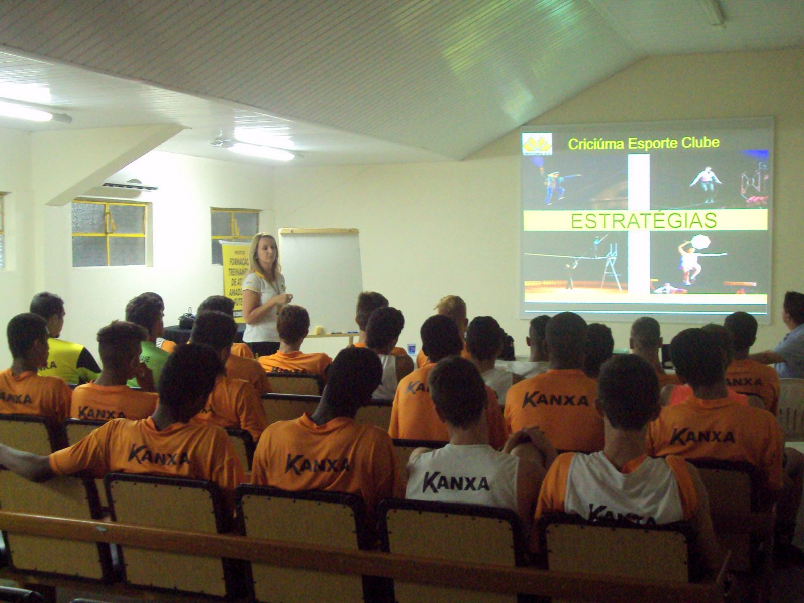 Os jogadores do Sub-20 e 17 do Criciúma participaram de uma palestra sobre equilíbrio emocional na manhã desta sexta-feira (28/11). O encontro ocorreu no auditório do Tigre, no estádio Heriberto Hülse. A psicóloga do clube carvoeiro, Francinéli Becker, conversou com os atletas.