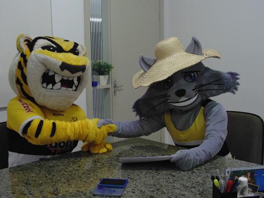 Mascotes representam a parceria. Foto: Ana Caroline Ferrari/criciumaec.com.br