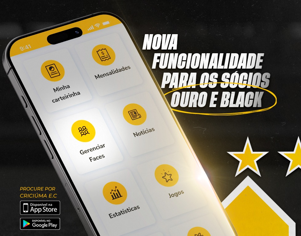 Todos os sócios do Tigre já podem cadastrar sua facial no aplicativo do Criciúma e optar por acessar via biometria. A opção já está ativa tanto para os titulares quanto dependentes.