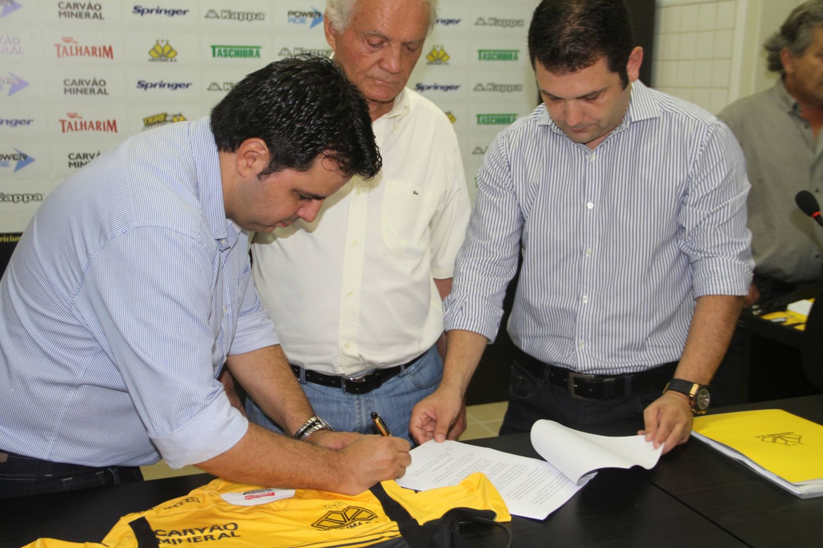 Assinatura de contrato ocorreu na Sala de Imprensa. Foto: Douglas Sartor