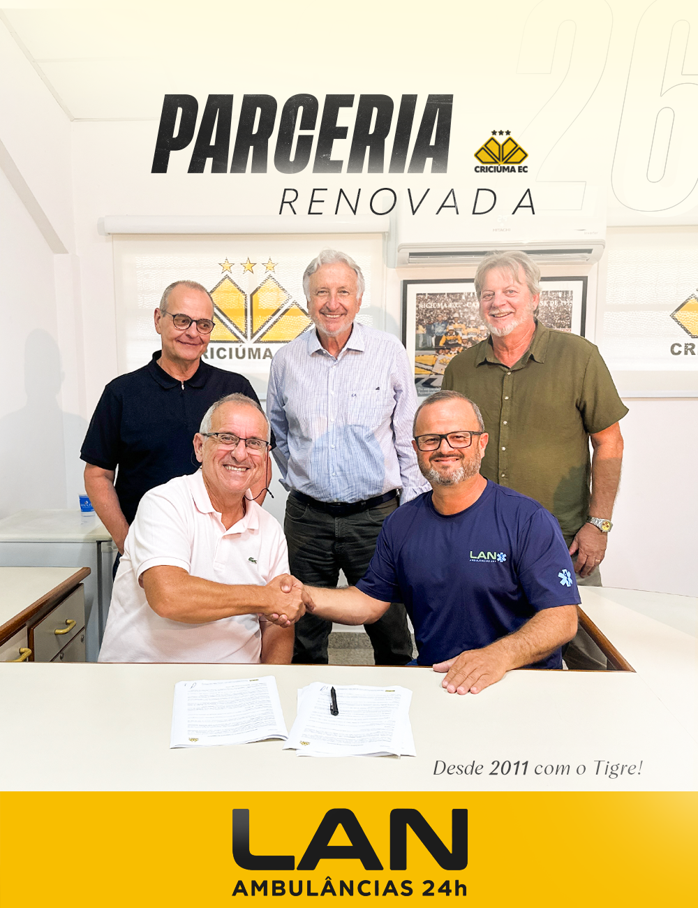 O Criciúma Esporte Clube e a Lan Ambulâncias oficializaram, na quarta-feira (14/01), no Estádio Heriberto Hülse, a renovação da parceria para a temporada de 2026. Presente ao lado do Tigre desde 2011, a empresa segue sendo uma das parceiras mais longevas do clube.