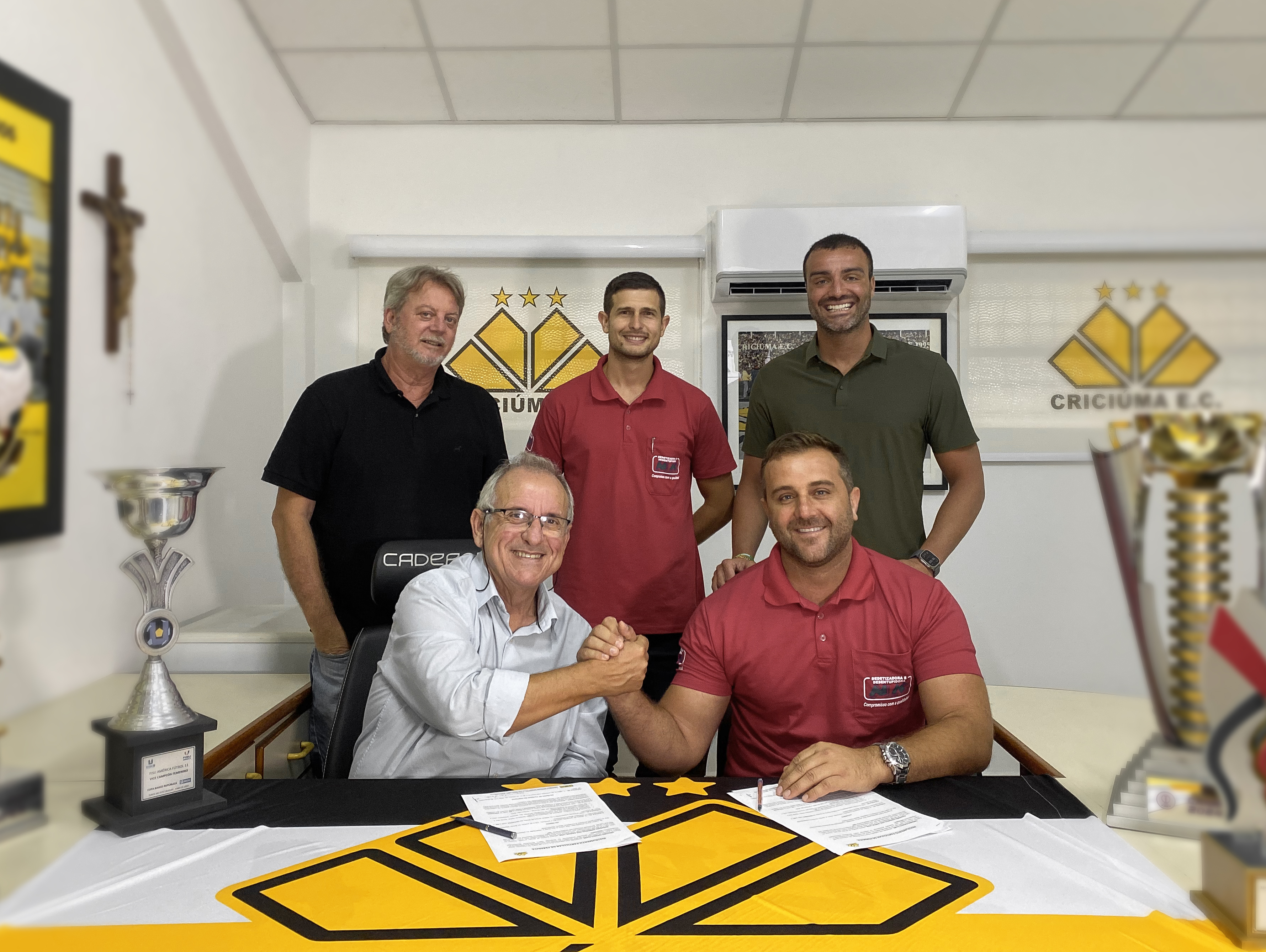 O Criciúma Esporte Clube oficializou a renovação da parceria com a NK Dedetizadora e Desentupidora para a temporada 2026. A assinatura do contrato ocorreu na Sala da Presidência do Estádio Heriberto Hülse.