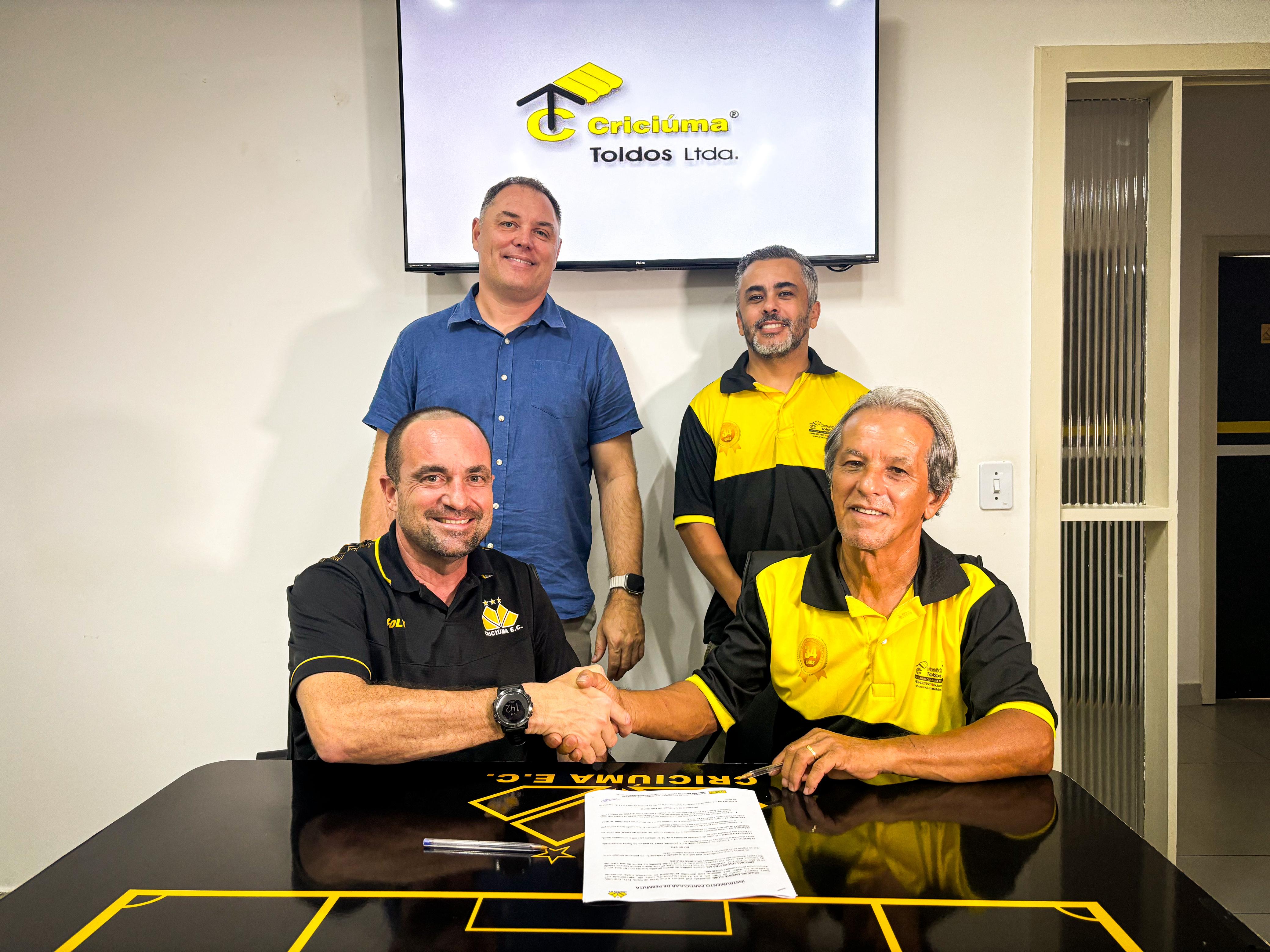Parceiros na valorização da estrutura do Tigre, o Criciúma Esporte Clube e a Criciúma Toldos anunciaram a renovação da parceria para 2025. O acordo garante a continuidade do fornecimento de toldos e da revitalização dos bancos de reservas do clube, reforçando o compromisso em proporcionar mais conforto e segurança para jogadores e torcedores. A assinatura do contrato aconteceu na sala da presidência do estádio Heriberto Hülse, com a presença do vice-presidente Guto Silva, do diretor de marketing do clube, Fernando Maragno e dos representantes da empresa.