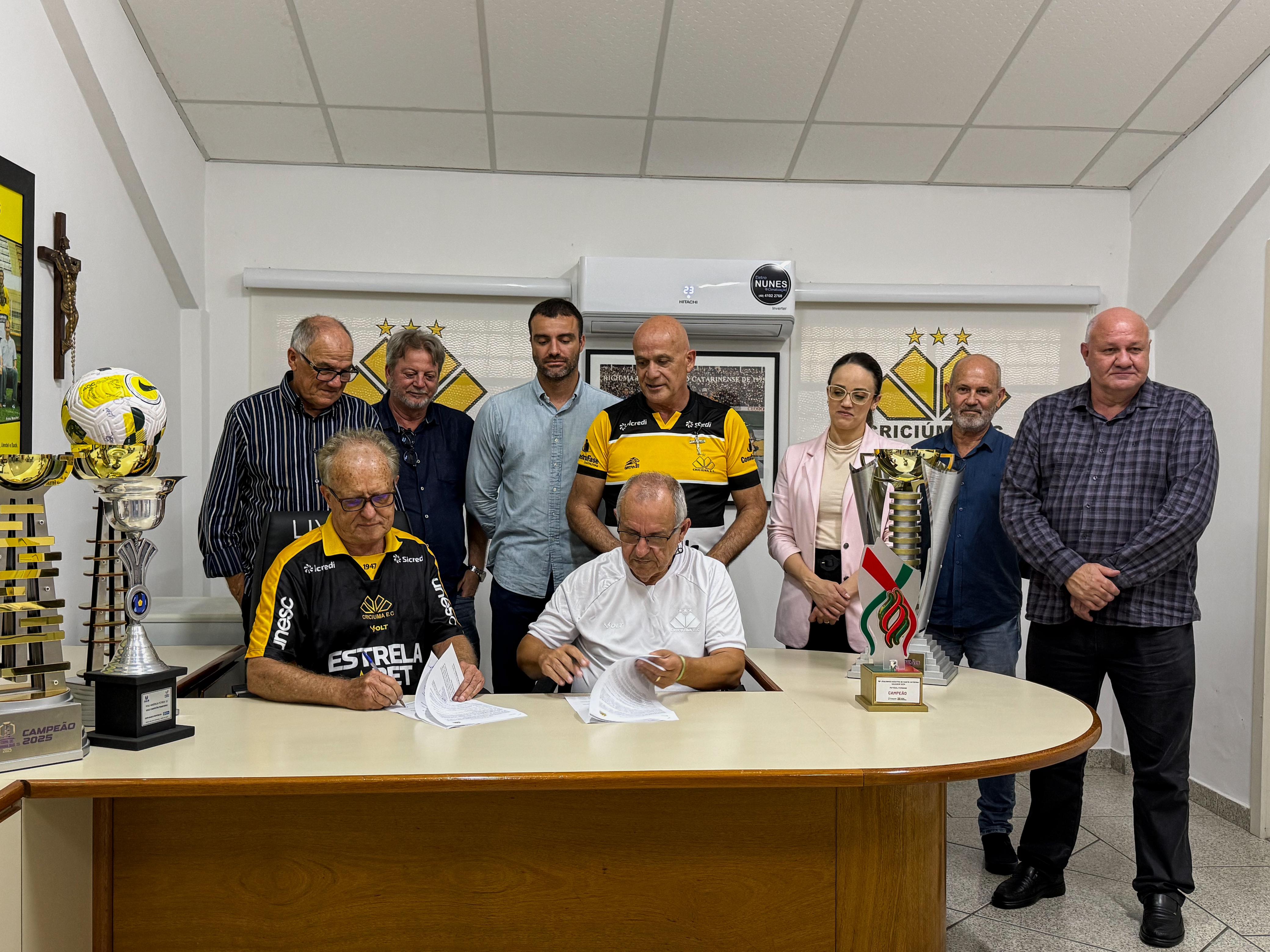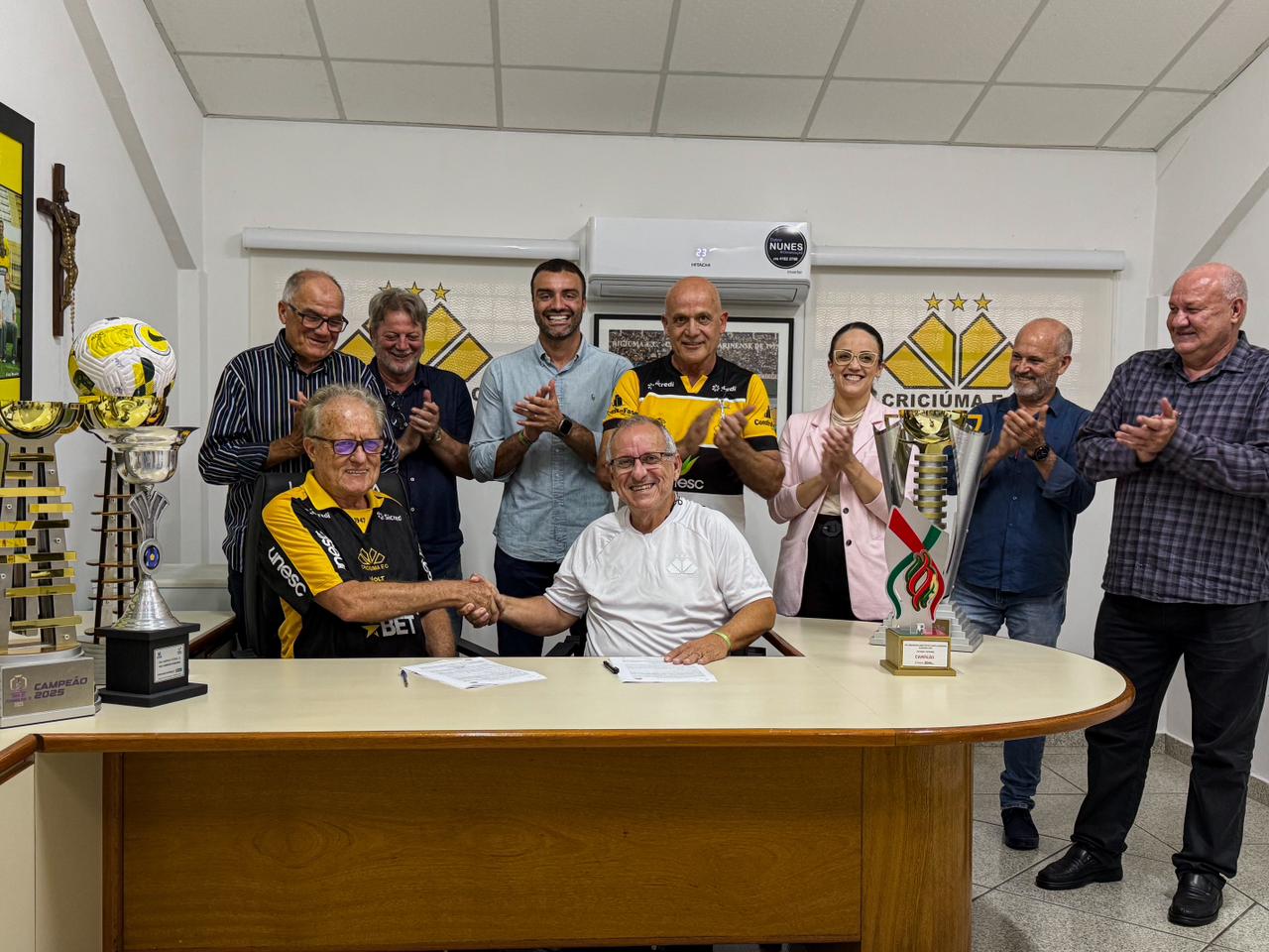 O Criciúma Esporte Clube e o Sicredi oficializaram, na tarde desta terça-feira (09/12), a renovação do contrato de patrocínio para a temporada 2026. A assinatura, realizada na sala da presidência, contou com a presença do presidente do clube, Pedro Paulo Canella, além de membros da diretoria do Criciúma. Representando o Sicredi, esteve presente, Aloísio Westrup, presidente da Sicredi Sul S, José Altair Back, vice presidente Sicredi Sul SC, Valdemar Darolt, conselheiro de administração e Débora Correa, assessora de Comunicação e Marketing.