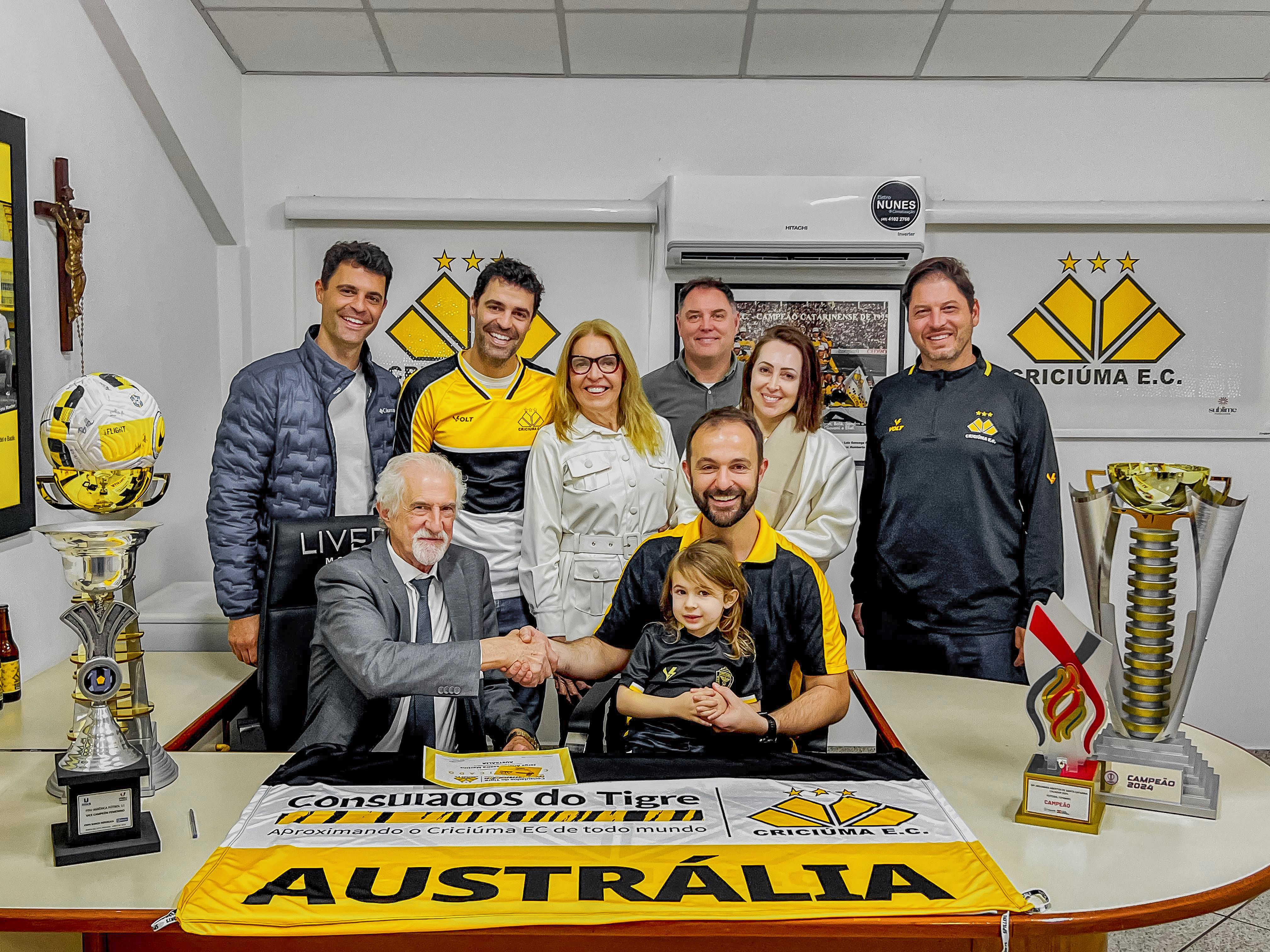 O Criciúma segue ampliando sua rede de consulados pelo mundo e fortalecendo a presença do clube junto à sua torcida internacional. Nesta segunda-feira (18/08), o Tigre oficializou o Consulado na Austrália, representado por Jorge André Teixeira Martins. Na sala da presidência, estavam presentes o cônsul e sua família, junto da diretoria do CEC.