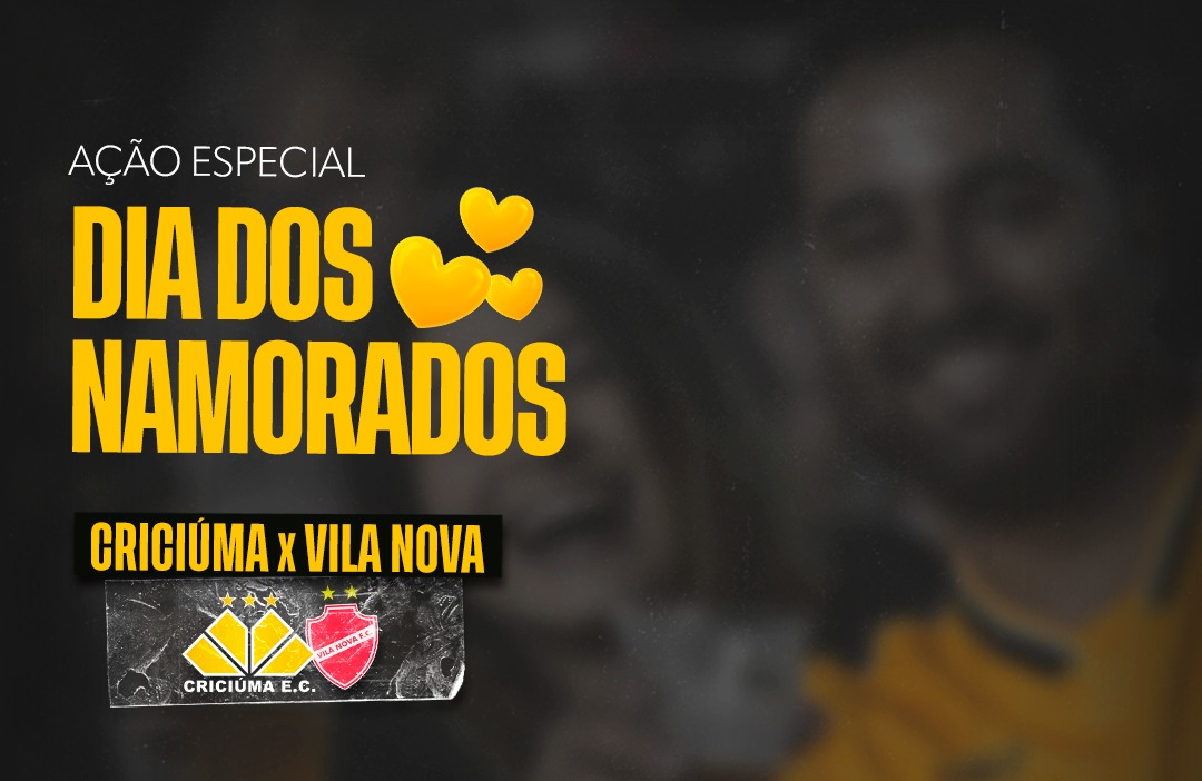 Em comemoração ao Dia dos Namorados, o Criciúma preparou uma ação especial para os casais apaixonados. Para o jogo da próxima segunda-feira (09/06), contra o Vila Nova, o clube vai disponibilizar 500 ingressos extras para o sócio torcedor em dia levar seu amor ao Majestoso.