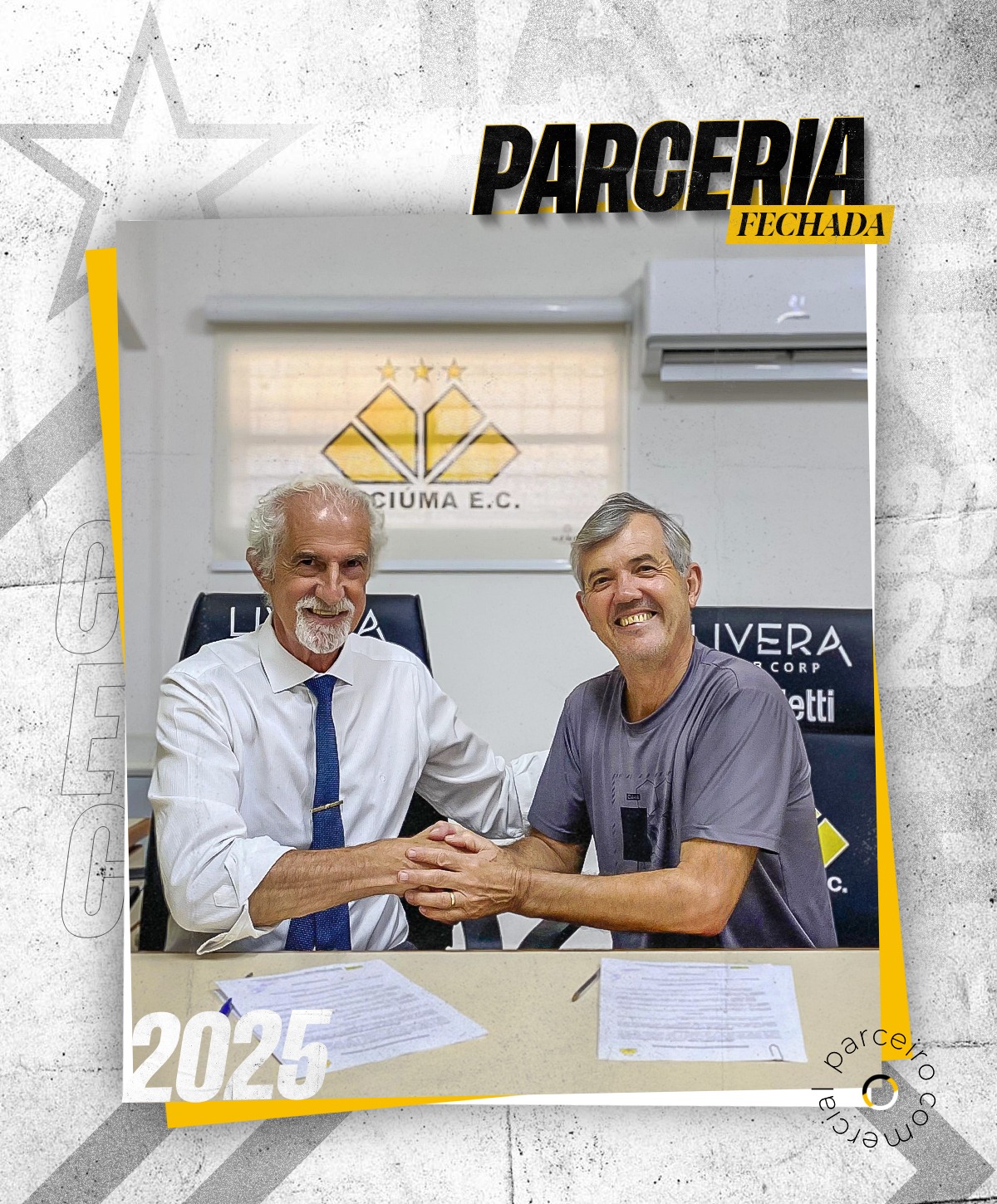 A assinatura do novo contrato ocorreu na sala da presidência do Estádio Heriberto Hulse, com a presença do presidente do Criciúma, Valter Minotto, e da gerente comercial e de marketing do clube, Viviani Olímpio. Representando a S&C Center, esteve o sócio-proprietário Luiz Carlos de Mattia, também conhecido como Carlinhos.