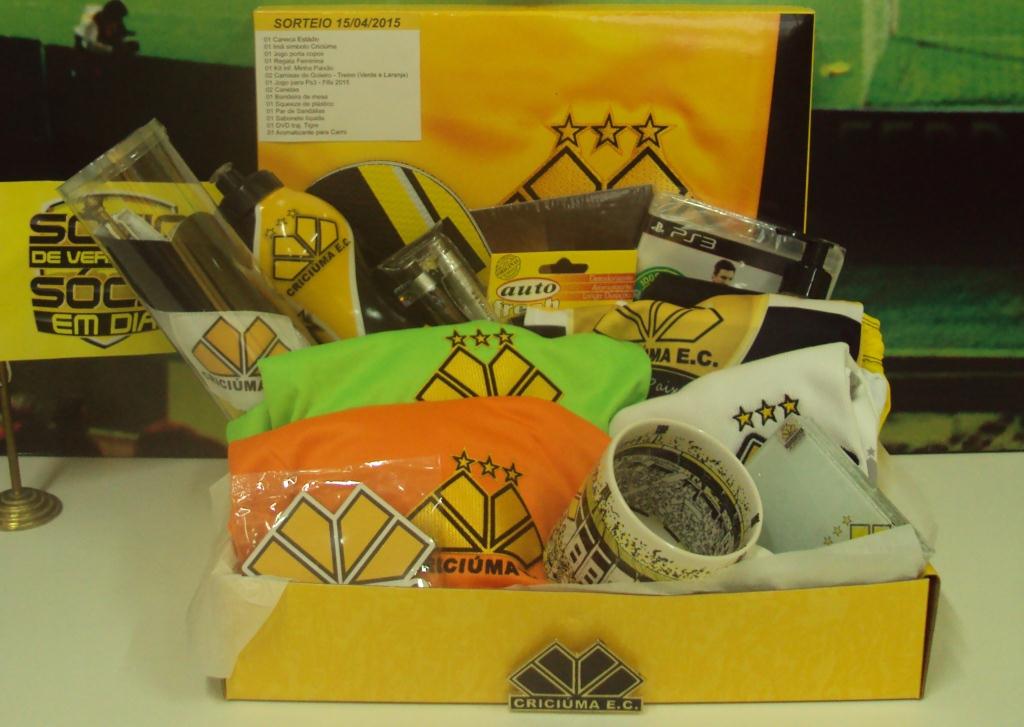 O kit a ser sorteado conta com uma caneca com o desenho do estádio Heriberto Hülse, um imã com o formato do símbolo do Criciúma, um jogo de porta copos, uma regata feminina, um kit uniforme infantil minha paixão, duas camisas de treino de goleiro (verde e laranja), um jogo Fifa para PS3, duas canetas, uma bandeira de mesa, um squeeze plástico, par de sandálias, uma sabonete líquido, um DVD da trajetória do Tigre na Copa do Brasil de 1991 e um aromatizante para carro.