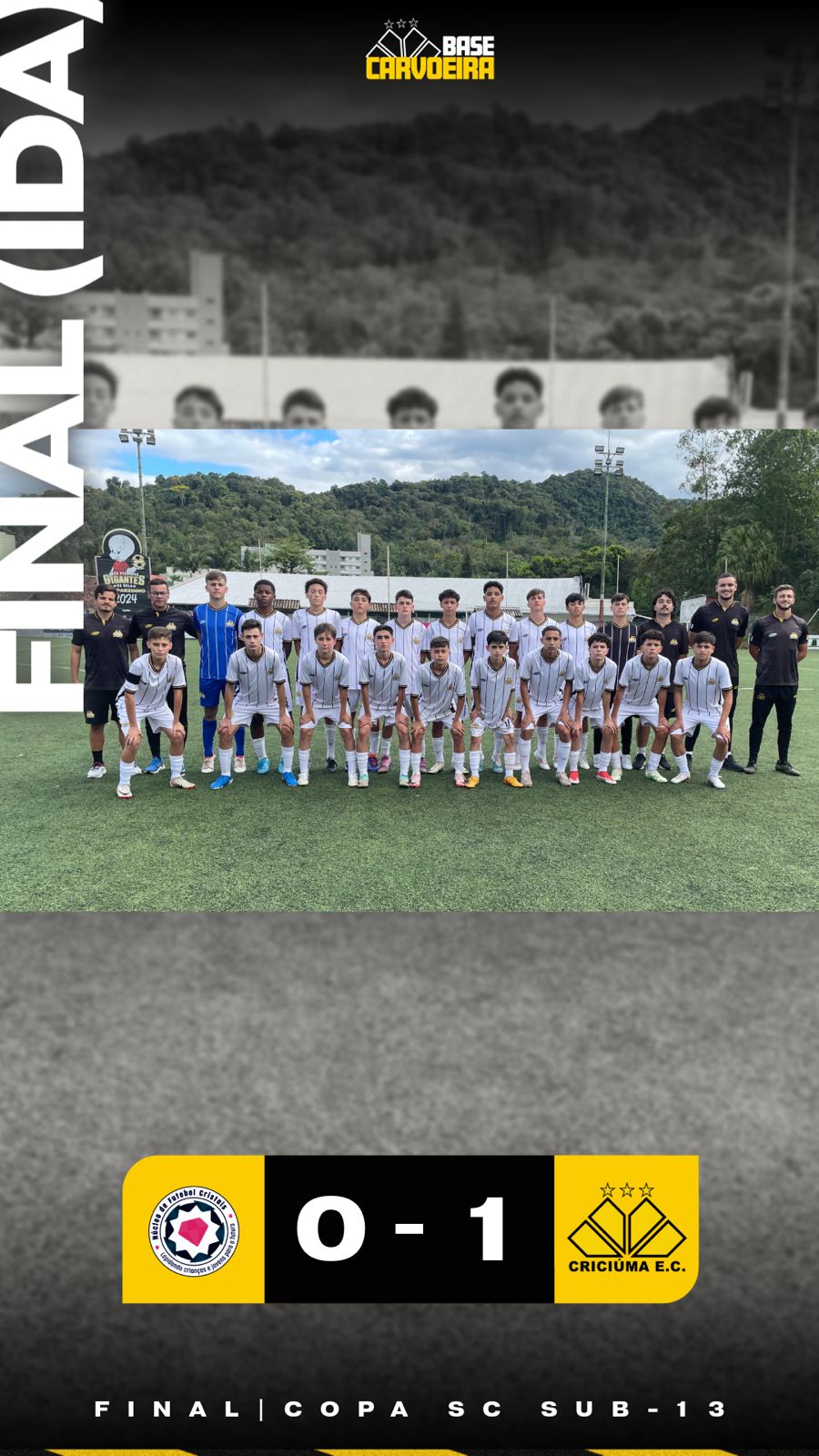Já no sábado (19/10) o Criciúma Sub-11 empatou em 1 a 1 com o Avaí no jogo de ida da final da Copa Santa Catarina, no Estádio Walmor Guollo, em Cocal do Sul. Arthurzinho marcou o gol do Tigre. Com o resultado, a decisão do título segue aberta para a partida de volta, que acontecerá no próximo sábado (26/10) em Florianópolis.