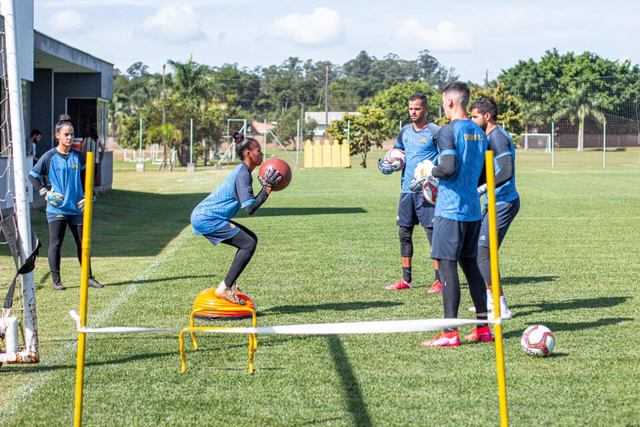 O treinamento dos goleiros do Tigre desta sexta-feira (02/04), no Centro de Treinamento Antenor Angeloni, teve como convidadas as goleiras Josianne da Silva Lopes e Eduarda Medina, de 17 anos, que atuam na equipe feminina do Criciúma. As atletas participaram do treinamento dos atletas Diego e Alisson, comandados pelo preparador de goleiros Bira Melo, juntamente com o preparador das carvoeiras, Lucas Teixeira. O trabalho teve o objetivo de proporcionar uma experiência maior para as atletas e para os profissionais do clube.