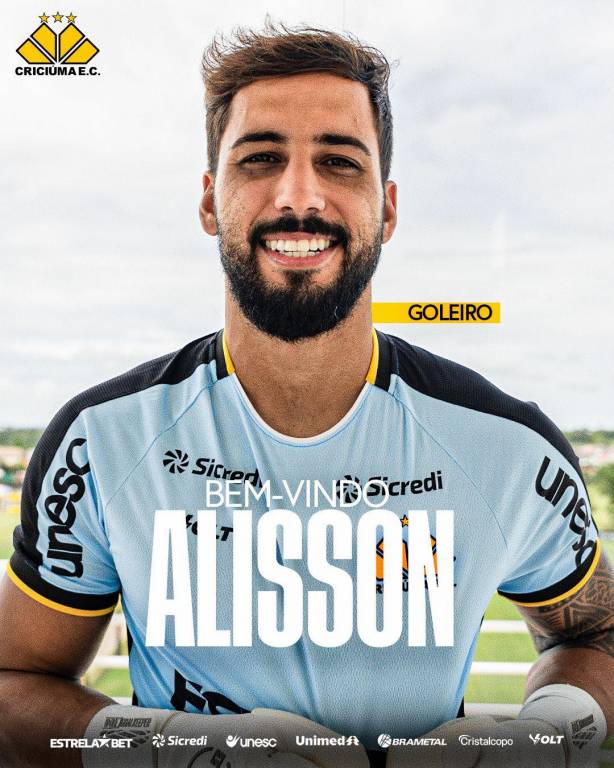 O Criciúma acertou nesta terça-feira (08/04) o retorno do goleiro Alisson. O atleta, que já atuou em quatro temporadas no Tigre, estava no Paysandu e um acordo entre os clubes foi encaminhado para a sua volta. Alisson já está no Centro de Treinamento Antenor Angeloni com o restante do elenco em preparação para a disputa da Série B do Campeonato Brasileiro e Copa do Brasil.