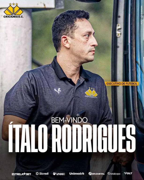 O Criciúma oficializou nesta quinta-feira (13/03) a contratação do seu novo executivo de futebol. Ítalo Rodrigues foi confirmado no Tigre e estará à frente do futebol do clube nas temporadas 2025 e 2026. O profissional chegará a cidade no início da próxima semana para ser apresentado oficialmente.