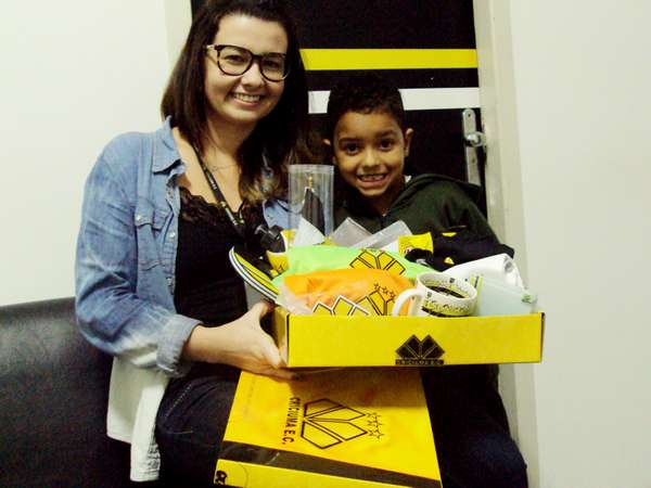 Diego Ramos Cardoso, de sete anos, esteve no estádio Heriberto Hülse no final da tarde dessa quarta-feira (15/04) e recebeu um kit oficial do Tigre. Ele foi o ganhador do mês de abril da promoção que sorteia produtos oficiais do Criciúma para os sócios em dia. O pai do jovem torcedor, Manoel Galvão Cardoso, levou o menino até o Majestoso para retirar o prêmio.