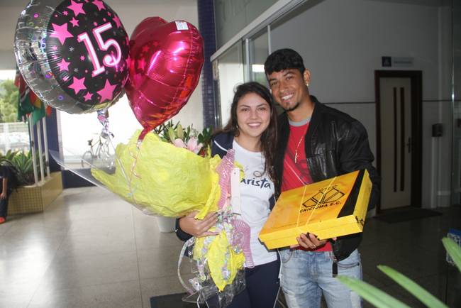 A torcedora do Criciúma, Maria Vitória Demétrio Silva, completou nesta sexta-feira (15/05) 15 anos e foi surpreendida com um inesperado presente. O atacante Lucca visitou a garota no fim da manhã no Colégio Marista, onde estuda. A jovem torcedora do time carvoeiro não conseguiu segurar as lágrimas de emoção.