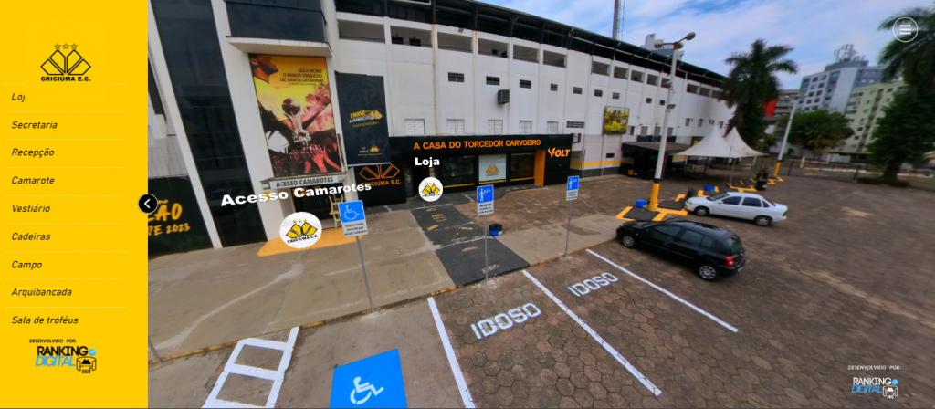 O Criciúma Esporte Clube acaba de inaugurar uma nova e emocionante maneira para os torcedores explorarem o estádio Heriberto Hülse. Agora, os fãs do Tigre podem desfrutar de um tour virtual completo e interativo, criado pela empresa Ranking Digital 360°, que já está disponível para acesso no site oficial do clube ou através do link: criciuma.com.br/360/.