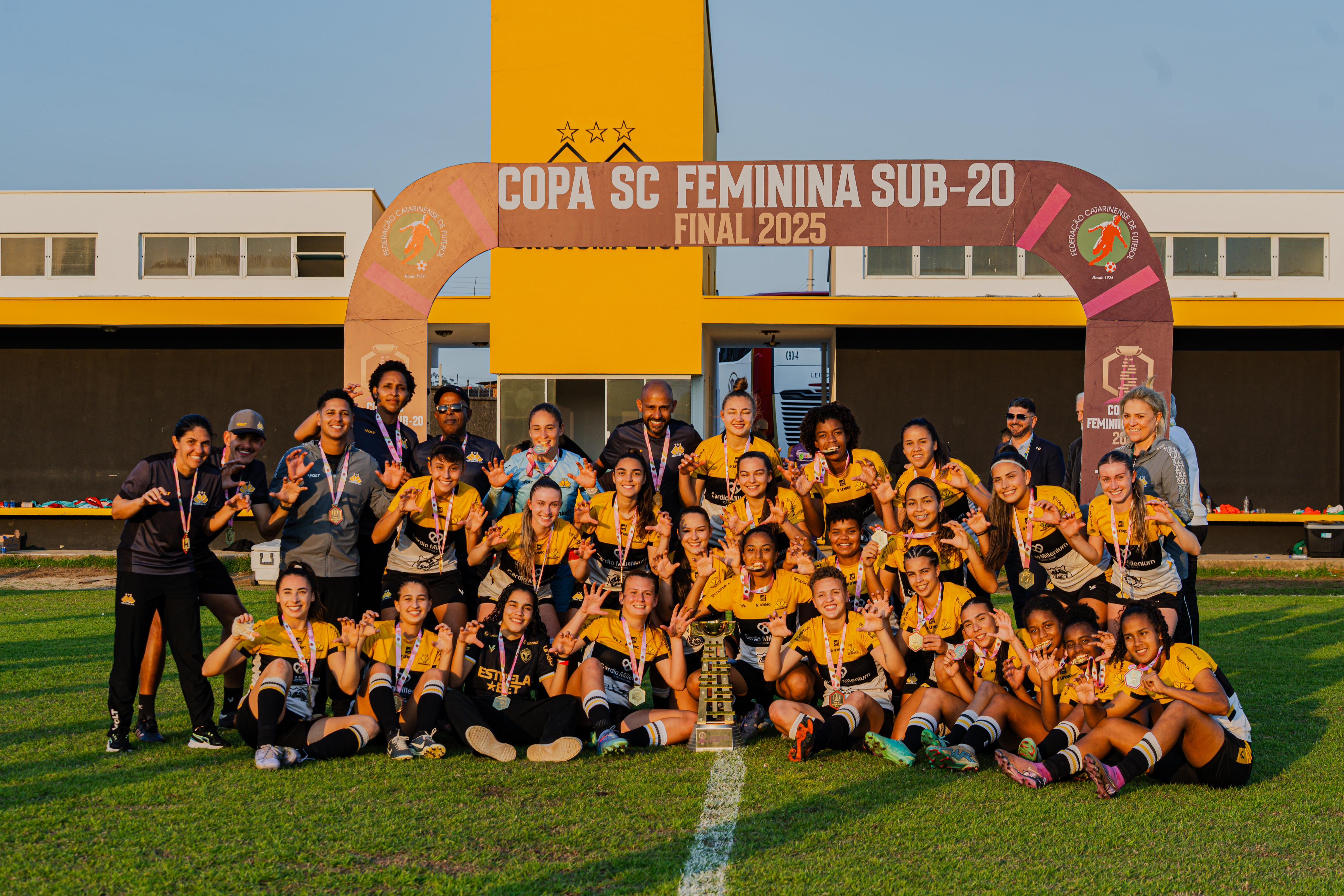 O Criciúma Esporte Clube é campeão da Copa Santa Catarina Sub-20 Feminina pelo segundo ano consecutivo. Na tarde desta quinta-feira (21), no Centro de Treinamento Antenor Angeloni, as Meninas Carvoeiras venceram o Meninas de Jaraguá por 2 a 1 e garantiram o título da edição 2025 da competição promovida pela Federação Catarinense de Futebol (FCF).