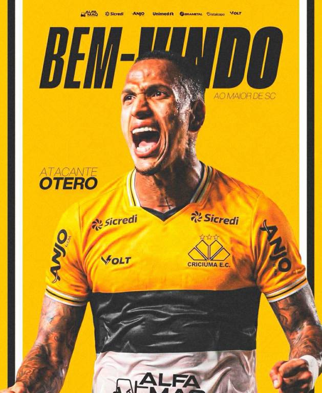 O Criciúma anunciou neste sábado (07/02) a chegada de mais um atacante para a temporada 2026. O venezuelano Otero, que estava no Nacional do Uruguai, é o novo reforço do Tigre para a disputa da Série B do Campeonato Brasileiro. O clube aguarda a chegada do atleta no Centro de Treinamento Antenor Angeloni para realizar os exames médicos e posteriormente assinar o contrato de um ano.