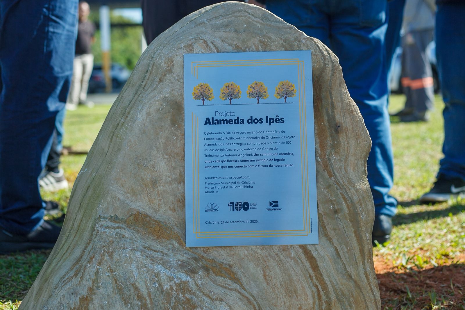 "Celebrar o Centenário de Criciúma é muito mais do que valorizar a história da nossa cidade, também é planejar o futuro para as próximas gerações. O plantio desses ipês, além da beleza e da homenagem ao Tigre pela cor amarela, também é um gesto de sustentabilidade e pertencimento para toda a comunidade", comentou o vice-prefeito de Criciúma, Salésio Lima, que acompanhou o ato.