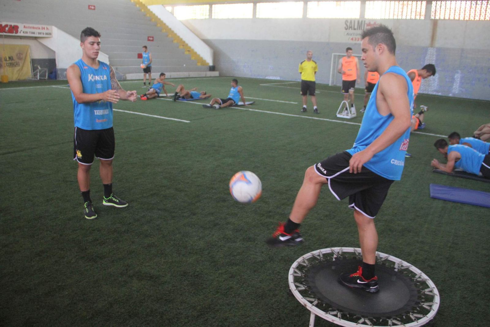 Bruno Lopes e Lulinha trabalham no ginásio. Foto: Fernando Ribeiro/criciumaec.com.br