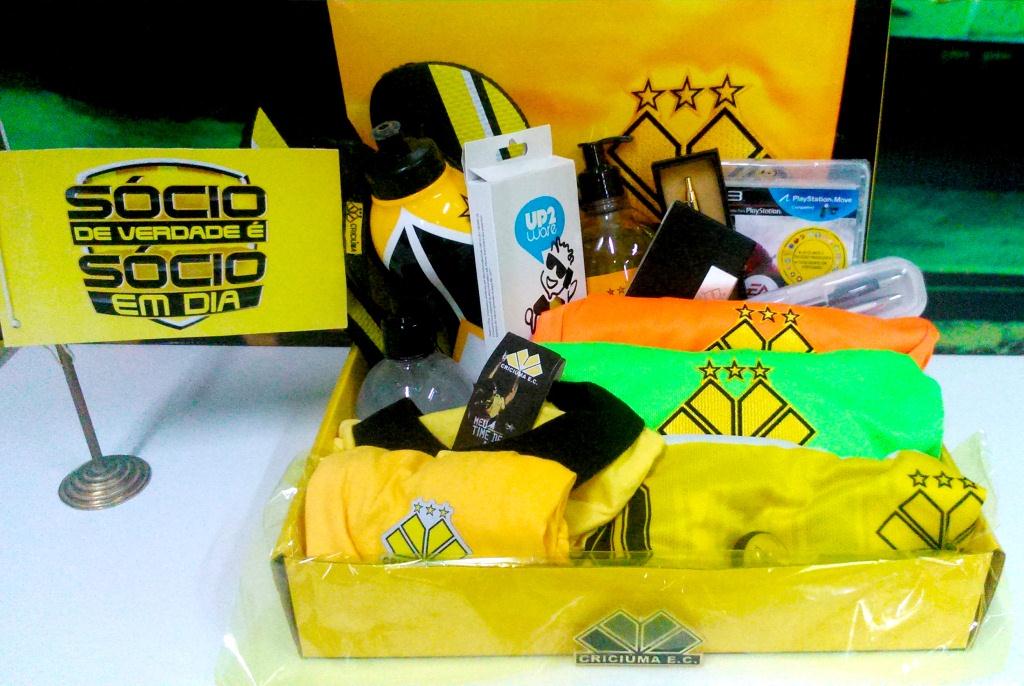O kit sorteado conta com um DVD da trajetória do Criciúma na Copa do Brasil de 1991, uma capa para celular, um body bebê, álcool em gel, uma sabonete líquida, roupa para cachorro, um jogo Fifa 2014 para PS3, um Squeeze, uma caneta de metal, um estojo com caneta e lapiseira, par de sandálias, botton, uma camisa goleiro treino na cor laranja e uma na cor verde, uma camiseta infantil (minha paixão) e um porta cartão.