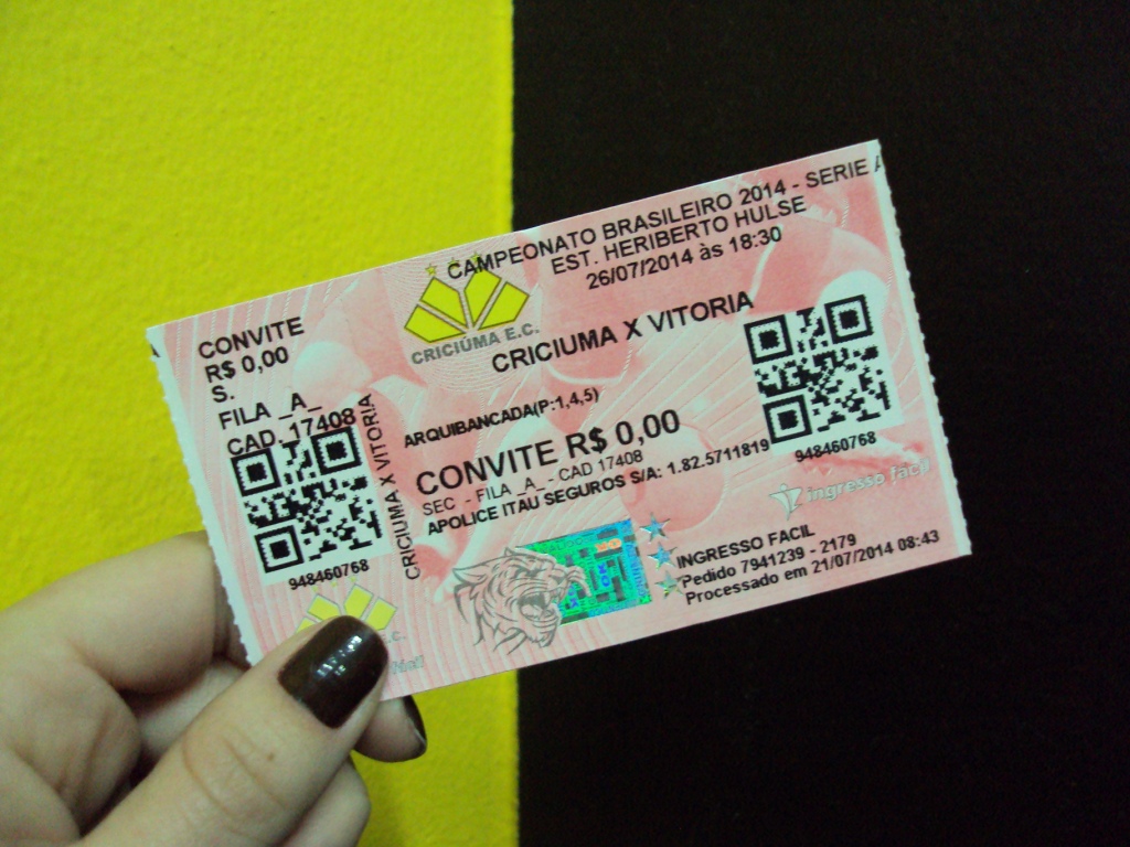 O Criciúma sorteou 20 ingressos de arquibancada para o jogo deste sábado (26/07) contra o Vitória entre os sócios em dia com o clube. A partida ocorre às 18h30min no estádio Heriberto Hülse. O sorteio ocorreu nesta sexta-feira (25/07) através de um sistema automático.