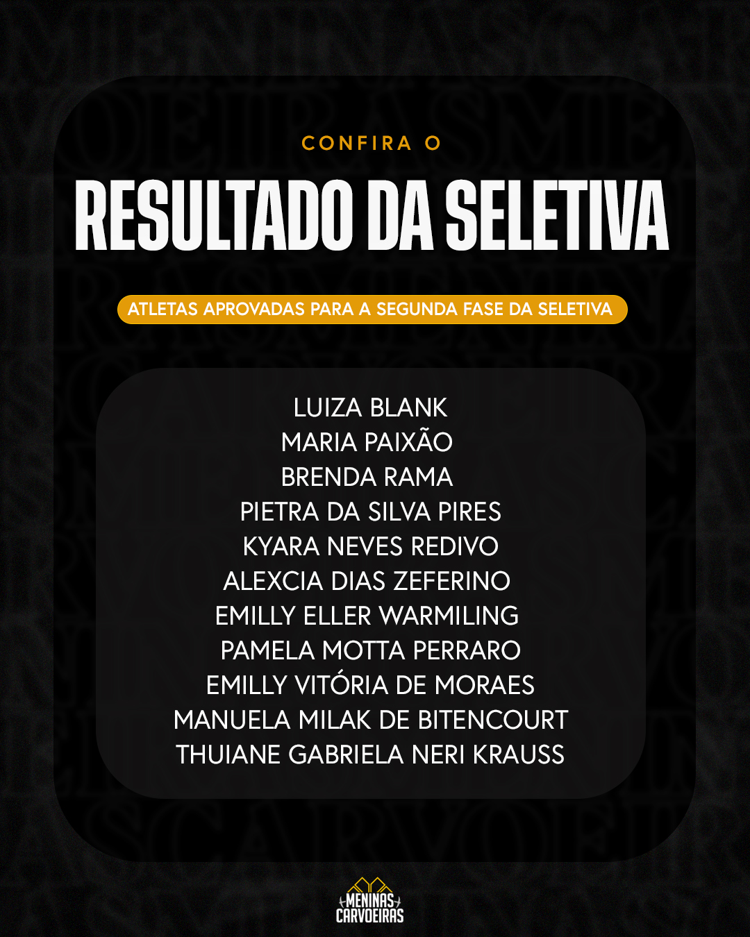 O evento contou com a participação de mais de 100 jovens atletas onde 21 meninas foram selecionadas para a segunda fase do processo seletivo: a fase de monitoramento. Nessa etapa, as jogadoras aguardam o contato da equipe responsável para darem continuidade ao processo de avaliação.
