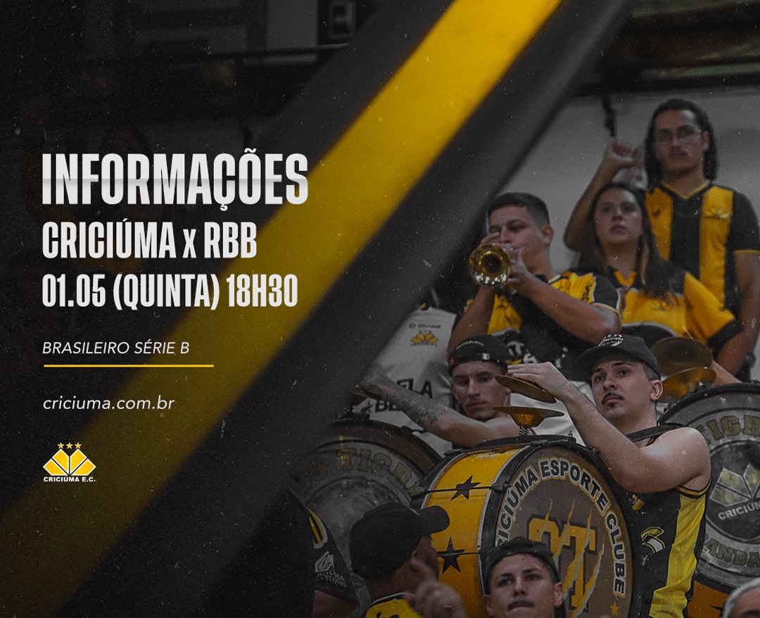 Nesta quinta-feira (01/05), o Criciúma enfrentará o Bragantino pela terceira fase da Copa do Brasil. A partida começará às 18h30, com a abertura dos portões programada para as 16h30. O ingresso de arquibancada inteiro custa R$100,00, enquanto a meia-entrada custa R$50,00 (válida para estudantes, pessoas com deficiência, idosos acima de 60 anos, entre outros, mediante comprovação conforme a legislação).