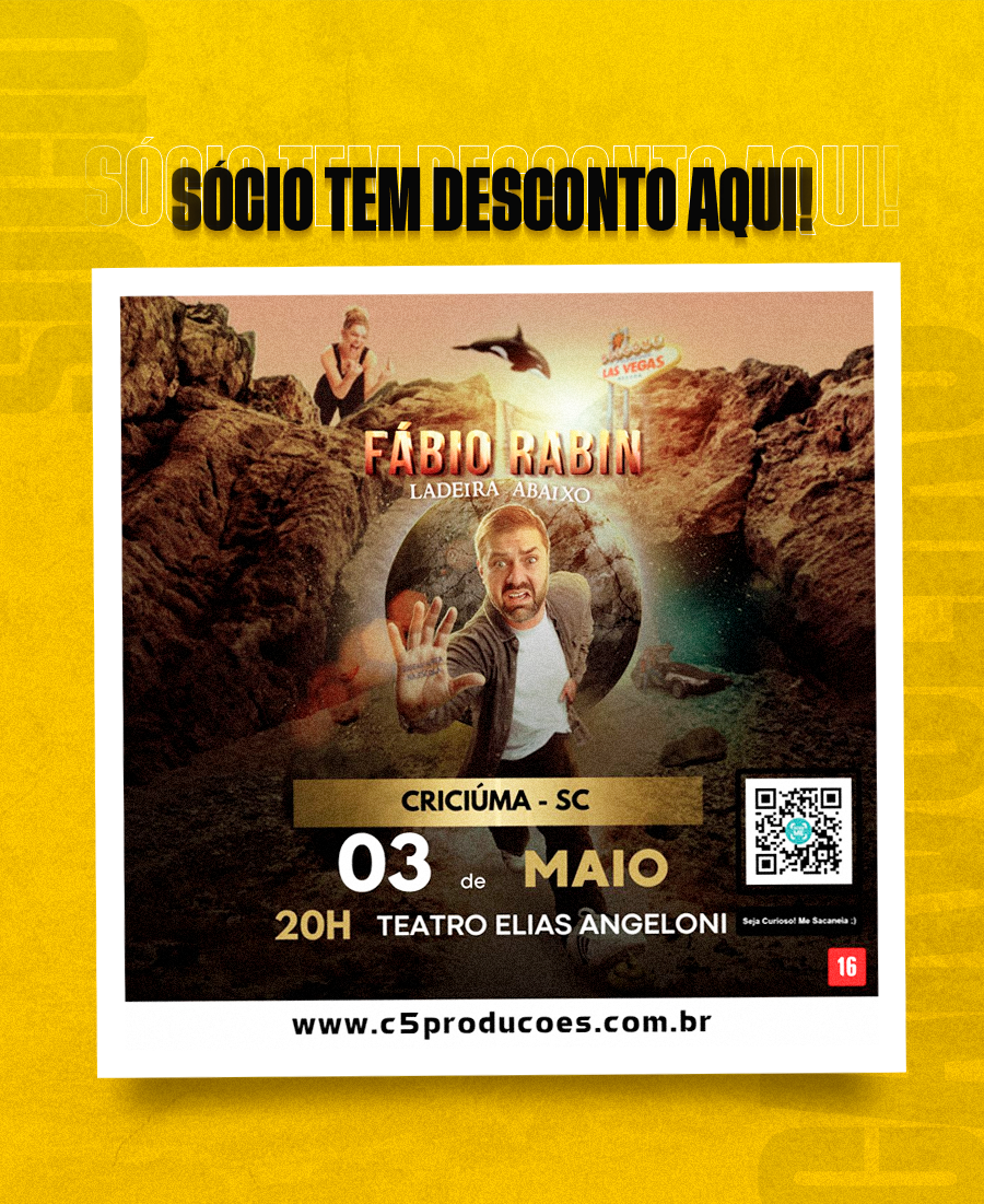 Sócio do Tigre tem desconto super promoconal na compra de um ingresso para a peça “Ladeira Abaixo”. Na bilheteria do Teatro Elias Angeloni, o torcedor carvoeiro que apresentar sua carteirinha física ou aplicativo, ganhará 50% de desconto e mais um ingresso. Assim dizendo, são dois ingressos pelo preço de uma meia-entrada.