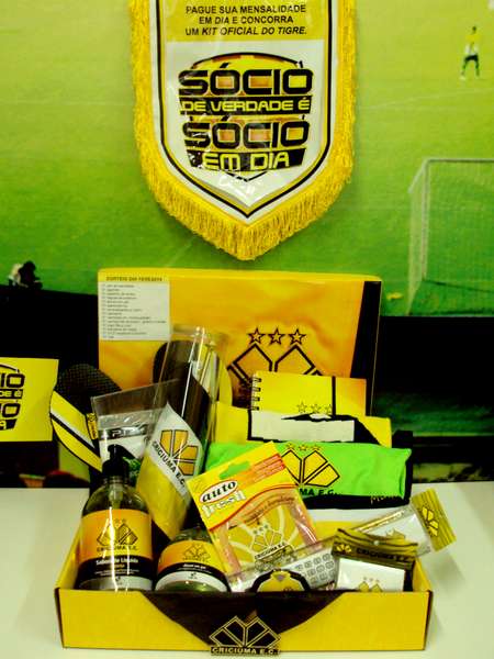 O kit, que será sorteado, conta com um par de sandálias, uma agenda, um espelho de bolsa, uma régua/calculadora, um álcool em gel, sabonete líquido, aromatizante para carro, cachecol, uma camiseta infantil minha paixão, camisa oficial treino de goleiro (verde), um jogo Fifa para PS3, uma bandeira de mesa, um DVD da trajetória do Criciúma na Copa do Brasil de 1991 e um imã.