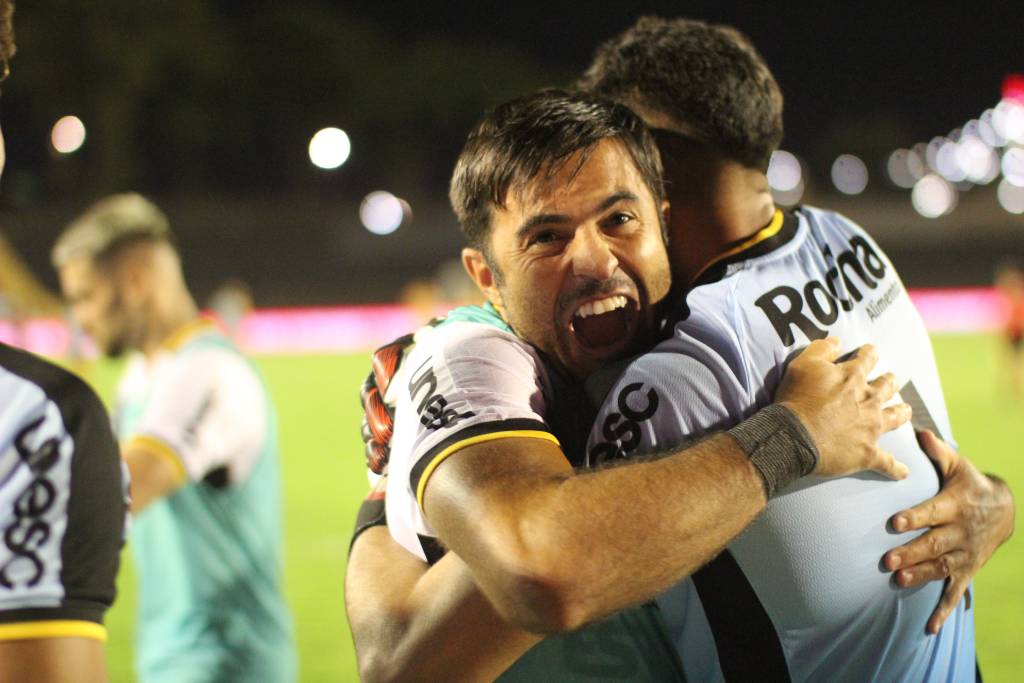 Eder e Gustavo comemoram a classificação do Tigre. Foto: Celso da Luz/ Assessoria de imprensa C.E.C.