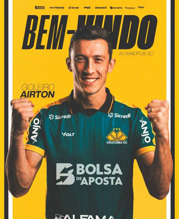 O Criciúma confirmou nesta segunda-feira (02/03) a contratação do seu novo goleiro para a disputa do Campeonato Brasileiro da Série B deste ano. Airton, que atuou no Vila Nova, terá contrato com o Tigre até o final da temporada e já está no Centro de Treinamento Antenor Angeloni em atividade com os companheiros de posição.