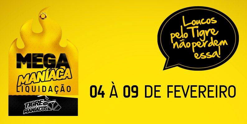 A Loja Tigre Maníacos participa pela primeira vez da Mega Liquidação, promovida pelo Clube de Dirigentes Lojistas (CDL), de Criciúma. O evento será do dia 4 e 9 de fevereiro. Diversos produtos oficiais foram colocados na promoção com preços bastante atraentes. Os descontos vão de 10 a 50%. Durante a Mega Liquidação, a Tigre Maníacos ficará aberta de segunda a sexta-feira até às 21 horas e no sábado até às 13 horas.