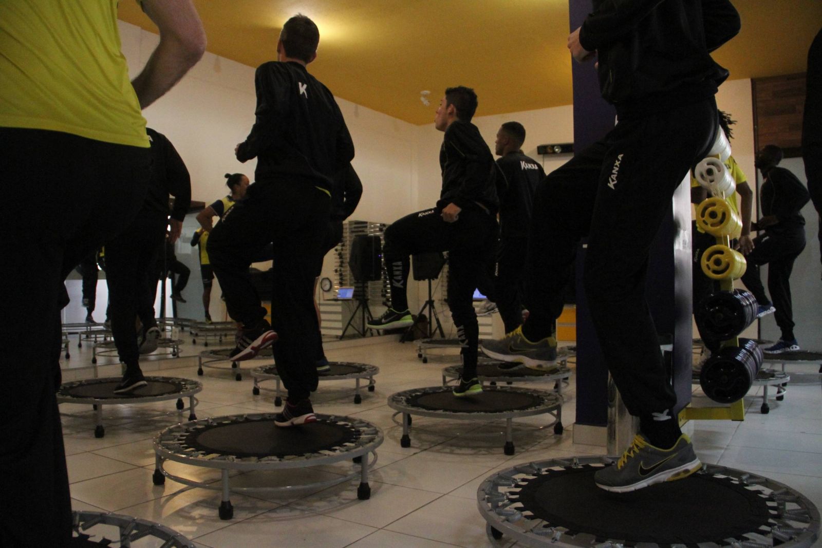 Além de musculação, os jogadores também fizeram uma aula de Power Jump. Esse tipo de trabalho auxilia na coordenação e também possui um baixo impacto. “O objetivo também foi o de sair um pouco do ambiente campo. Foi muito trabalho bem puxado”, destaca o preparador físico Benê Lima.