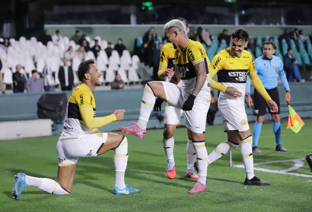 O Criciúma é o novo líder da Série B do Campeonato Brasileiro. Com a presença de muitos torcedores no setor visitante do estádio Couto Pereira, em Curitiba (PR), o Tigre enfrentou o Coritiba a noite desta quinta-feira (25/09) e venceu o adversário paranaense pelo placar de 2 a 0. Os gols carvoeiros no confronto da 28ª rodada da competição nacional foram marcados por Rodrigo e Nicolas, no primeiro tempo.