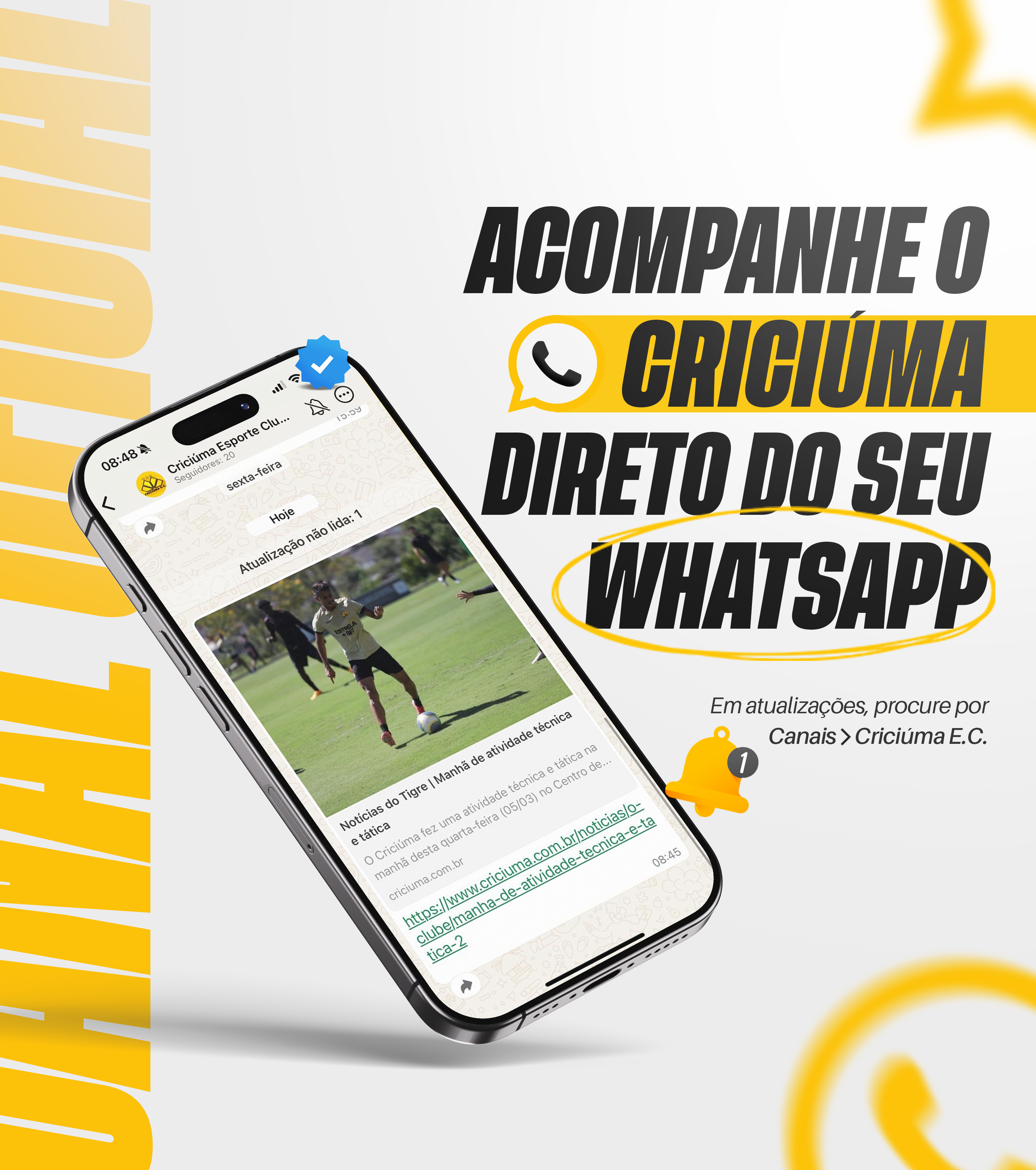 O Criciúma Esporte Clube deu mais um passo para fortalecer a relação com sua torcida ao lançar um novo canal de comunicação via WhatsApp. A iniciativa tem como objetivo manter os torcedores carvoeiros informados em primeira mão sobre todas as novidades do clube, proporcionando uma experiência mais ágil e interativa.