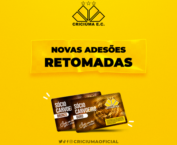 O Criciúma irá reabrir, nesta quarta-feira (12/04), as adesões para novos torcedores que desejam se associar ao plano Carvoeiro Ouro. Com 17.200 sócios-torcedores, o clube estará inativando sócios com três ou mais parcelas em aberto para a abertura das novas vagas.