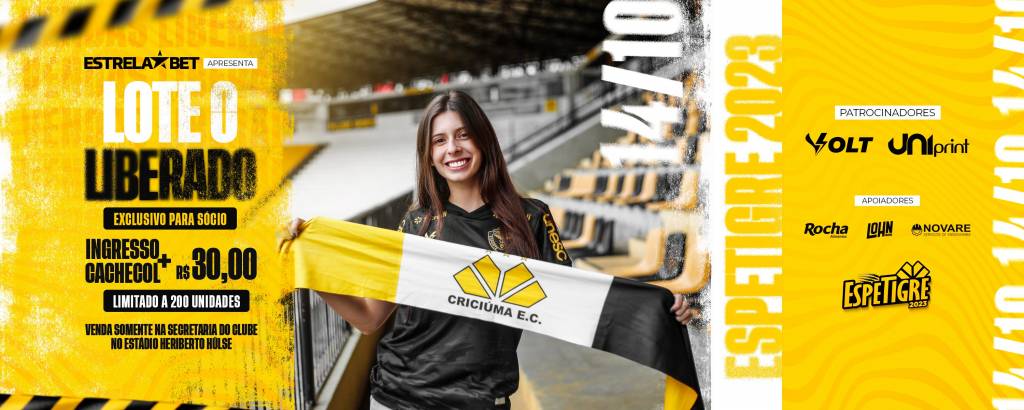 A Espetigre 2023 está chegando! A tradicional festa do Criciúma Esporte Clube vai agitar o pátio do estádio Heriberto Hülse no dia 14 de outubro. O evento, que em 2022 trouxe mais de 2 mil pessoas ao Majestoso, contará com shows, atrações, espaço kids, espetinho e muito chopp para a galera.