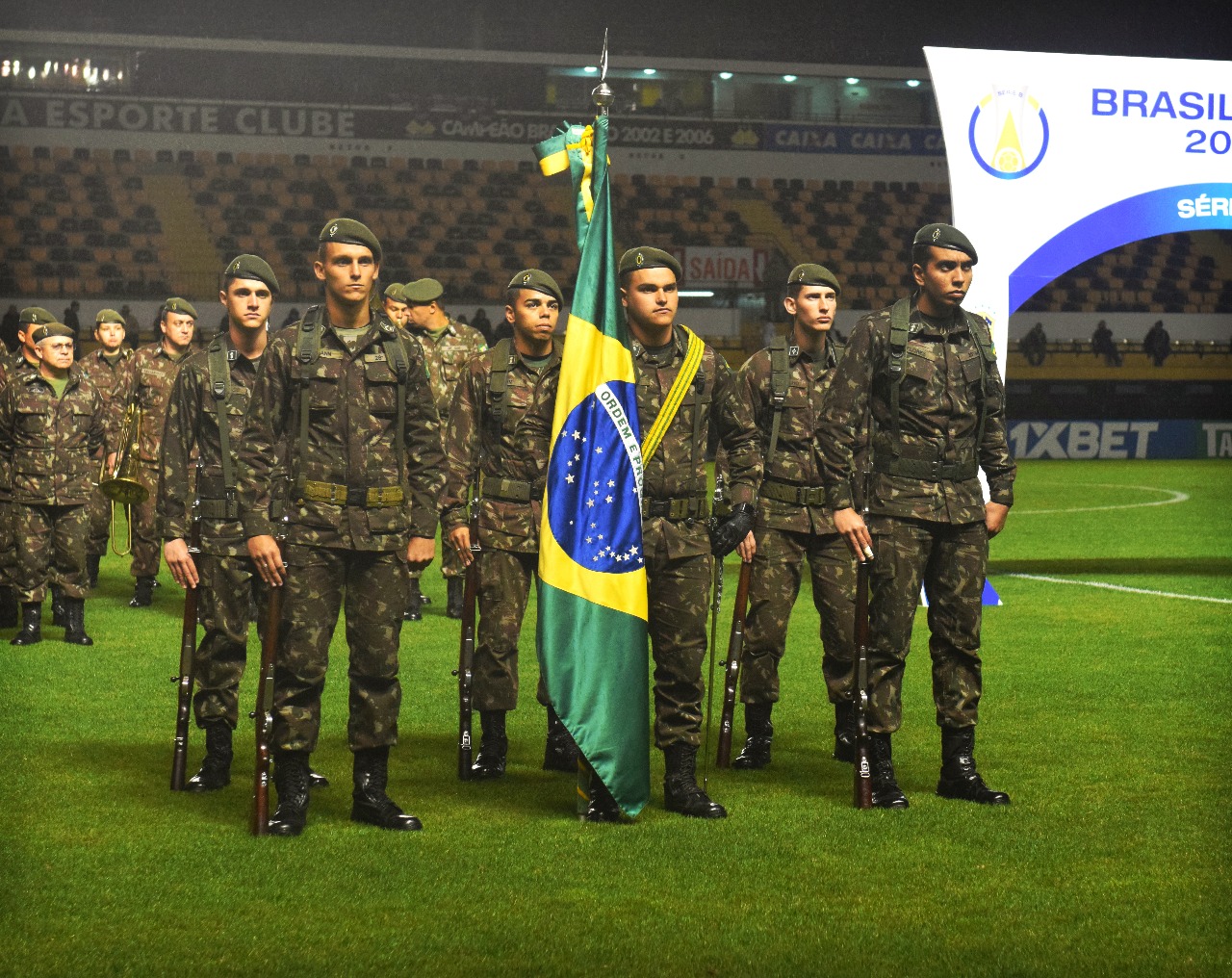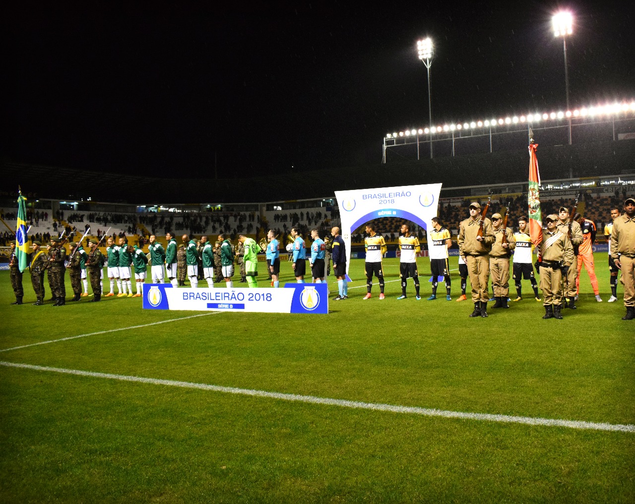 Solados do 28º GAC participaram da abertura do jogo de terça. Foto: Ulisses Job/www.criciuma.com.br