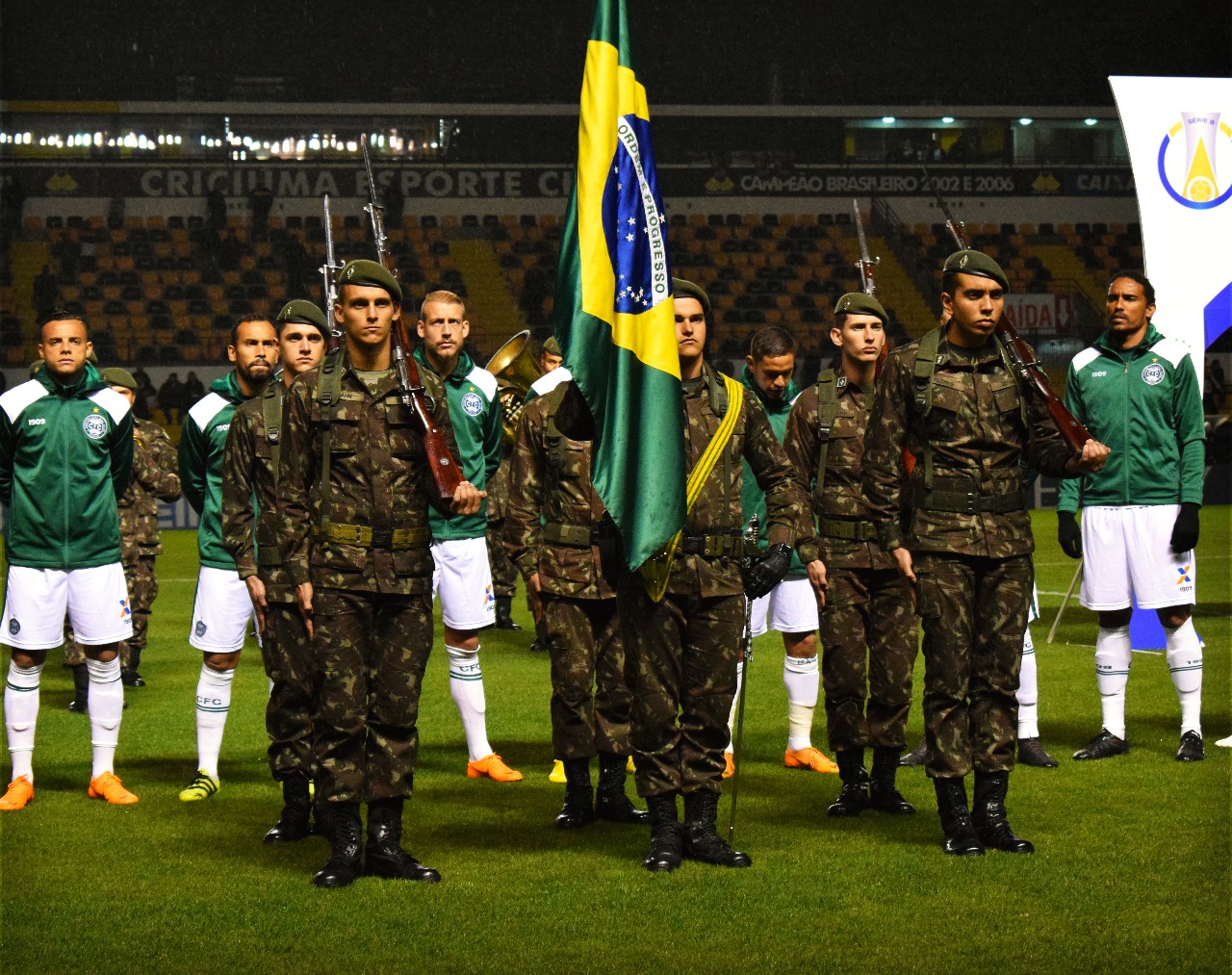 Antes de a bola rolar na noite desta terça-feira (21/08) entre Criciúma e Coritiba, no estádio Heriberto Hülse, pela Série B do Campeonato Brasileiro, foi feito uma homenagem em referência ao Dia do Soldado. A banda do 28º Grupo de Artilharia de Campanha tocou os hinos do Brasil e de Santa Catarina. As respectivas bandeiras também foram levadas por soldados. O público carvoeiro aplaudiu bastante a apresentação.