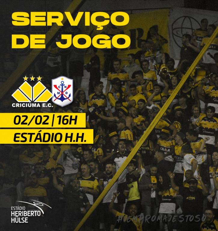O Criciúma joga o segundo jogo seguido dentro de casa pelo Campeonato Catarinense 2020. Neste domingo (02/02), a partir das 16 horas, o Tigre enfrenta o Marcílio Dias, no estádio Heriberto Hülse, pela quarta rodada da competição estadual.