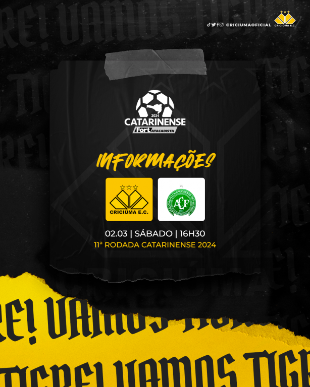 Os ingressos já estão disponíveis no site Minha Entrada, no link: https://minhaentrada.com.br/evento/criciuma-x-chapecoense-campeonato-catarinense-serie-a-23070