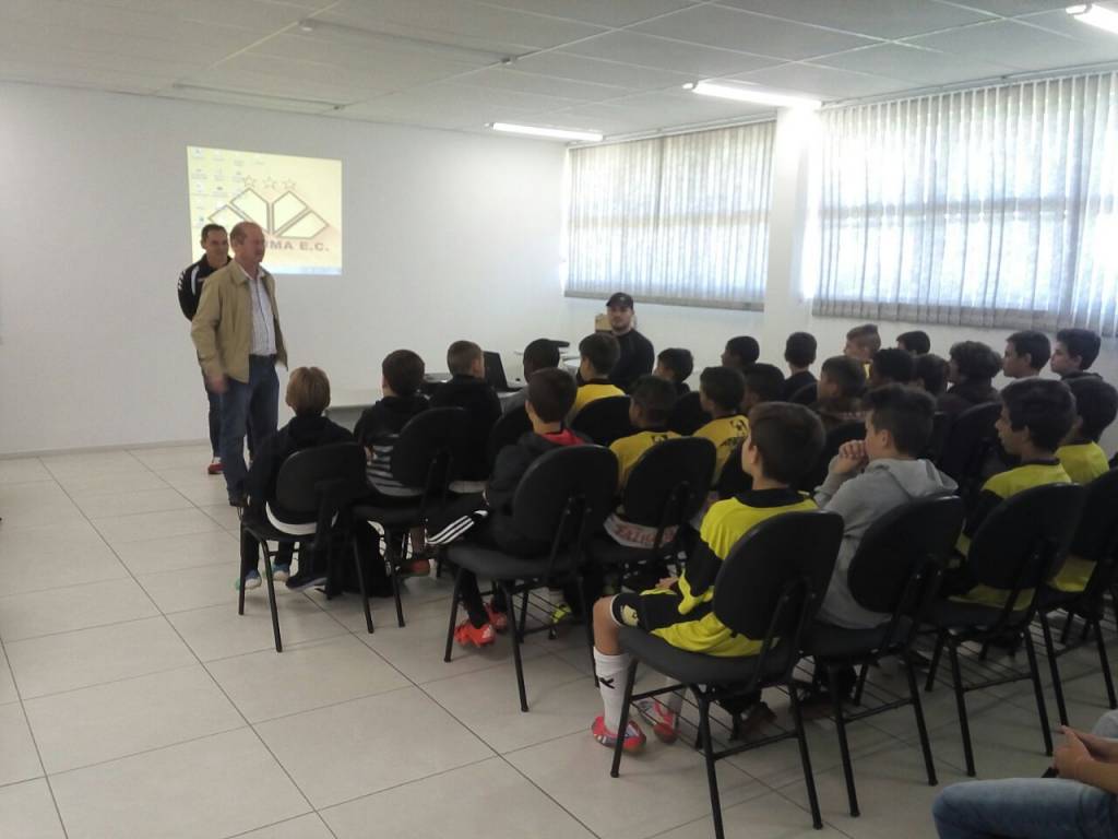 A tarde desta quarta-feira (27/04) iniciou um pouco diferente para os jovens atletas das categorias Sub-11, Sub-12 e Sub-13 do Criciúma. Antes dos treinos programados, todos se reuniram no auditório do Centro de Treinamento para uma palestra motivacional com o professor Neno. Antes, o presidente do clube, Jaime Dal Farra, conversou com os pequenos, que são o futuro do Tigre.