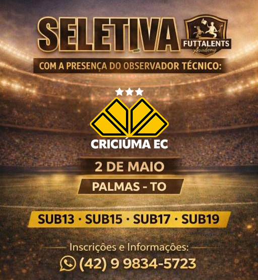 O Criciúma realizará uma avaliação para as suas divisões de base em Palmas (TO). No dia 2 de maio ocorre uma seletiva para novos atletas do Tigre para as categorias de Sub-13 a Sub-19. O observador técnico da base carvoeira, Benevan Ribeiro, estará presente acompanhando os testes.