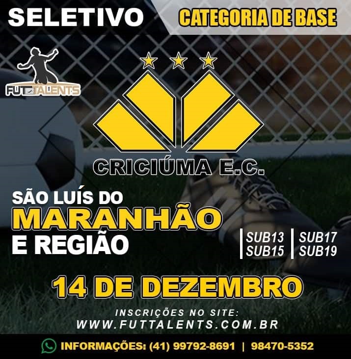 Mais uma avaliação será realizada para as divisões de base do Criciúma. No dia 14 de dezembro irá ocorrer uma seletiva para novos atletas do Tigre para as categorias de Sub-13 a Sub-19 em São Luís do Maranhão, no estado do Maranhão. O observador técnico da base carvoeira, Benevan Ribeiro, estará presente.