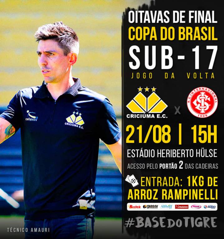 A tarde desta quarta-feira (21/08) será de decisão na Copa do Brasil Sub-17. A partir das 15 horas, o Criciúma recebe o Internacional (RS) no estádio Heriberto Hülse pelo jogo da volta das oitavas de final da competição nacional.