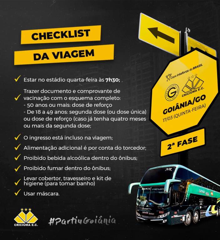 Os torcedores que estiverem na lista deverão estar no pátio do estádio Heriberto Hülse na quarta-feira (16/03), às 7h30min. O ônibus da empresa Adenilde Turismo inicia a viagem às 8 horas.