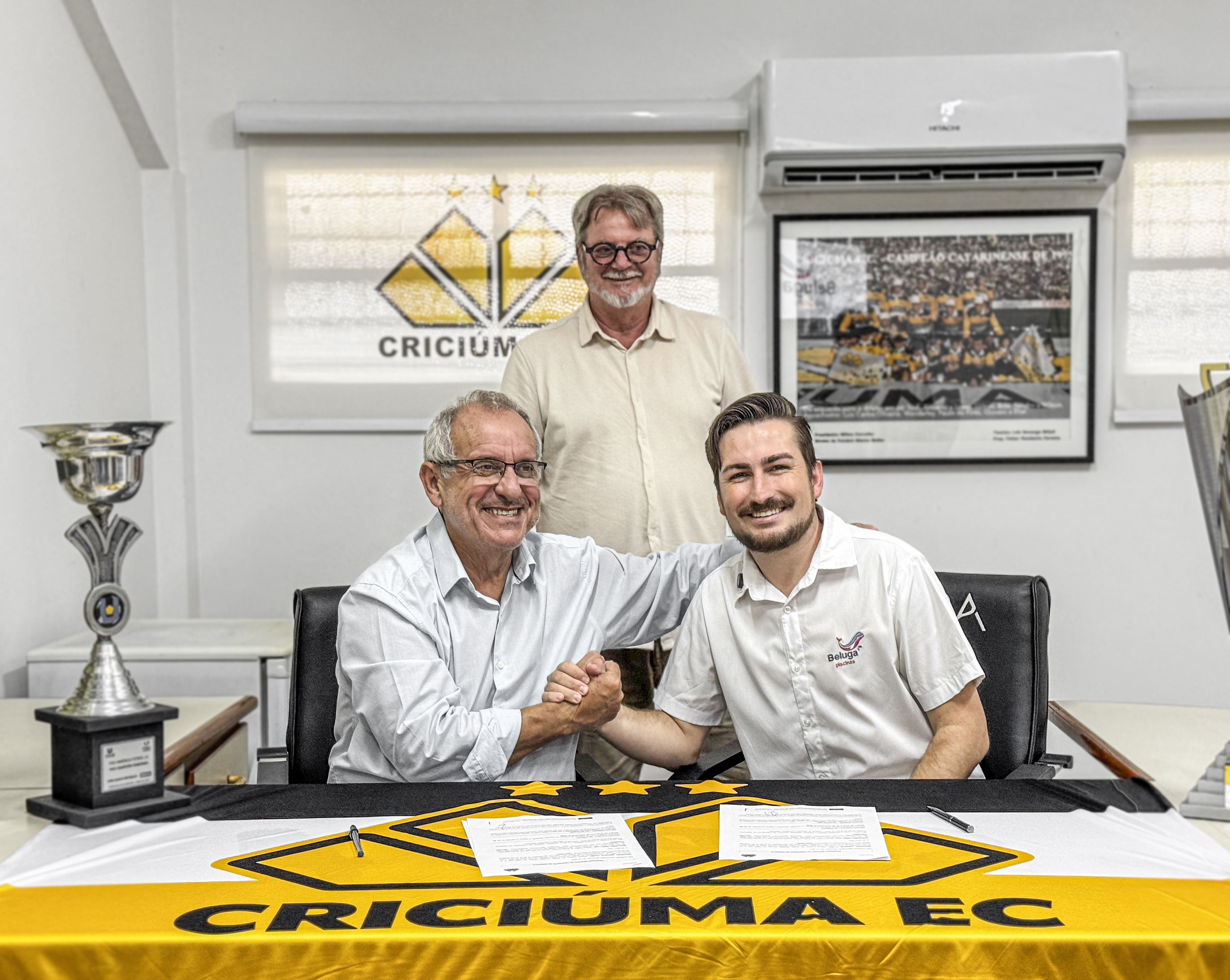 O Criciúma Esporte Clube e a Piscinas Beluga oficializaram a renovação do contrato de parceria para 2026. O encontro aconteceu na sala da presidência do estádio Heriberto Hülse, com a presença de Pedro Paulo Canella, presidente do clube e Jairton Barreto, diretor de marketing do clube. Representando a Beluga, esteve o CEO Rafael Pegoraro.