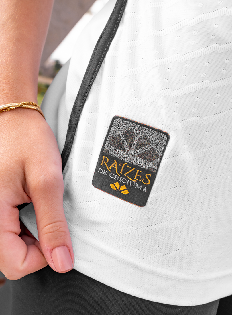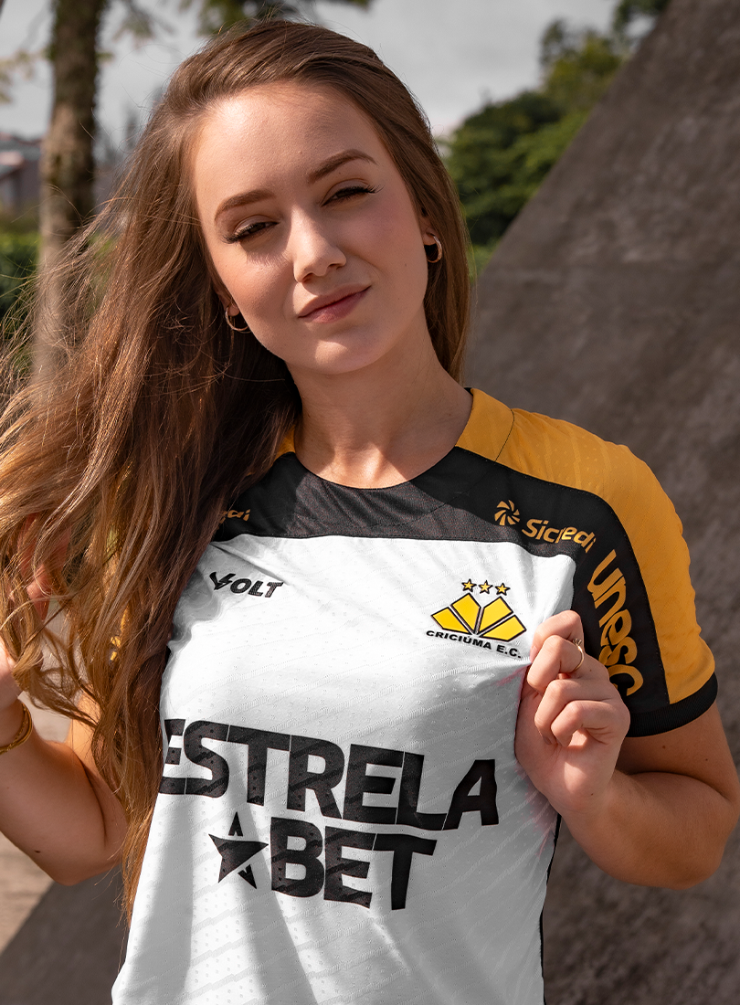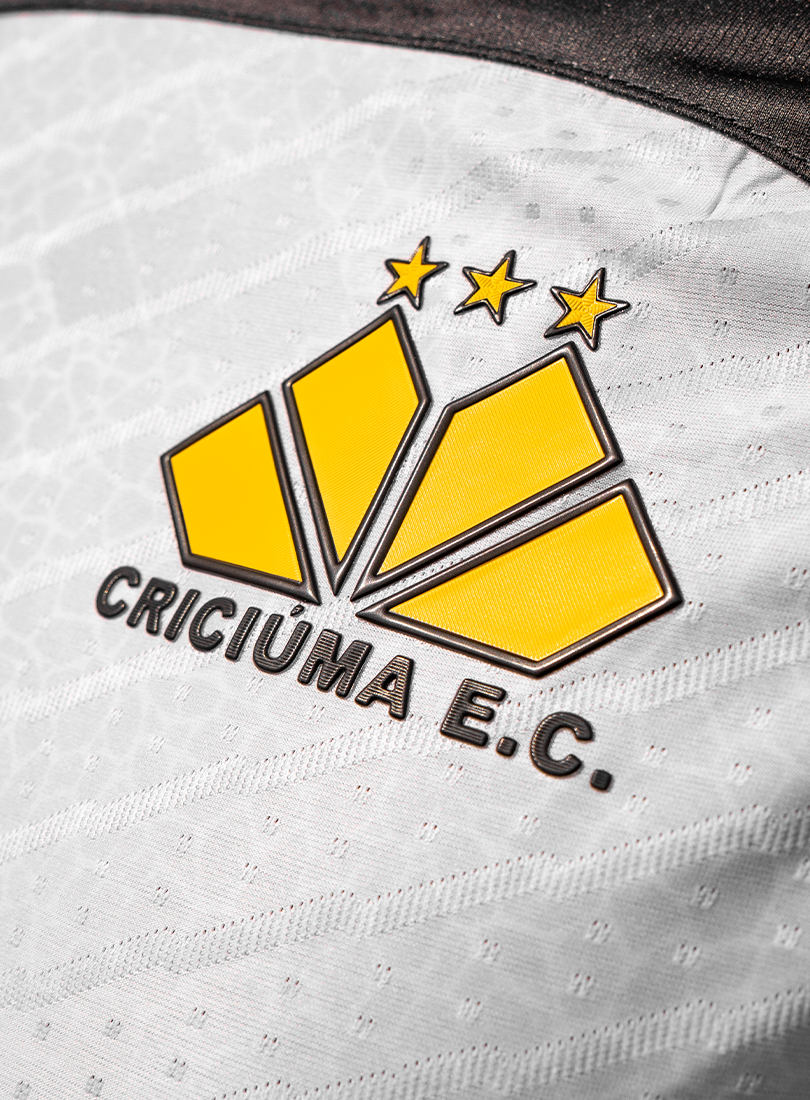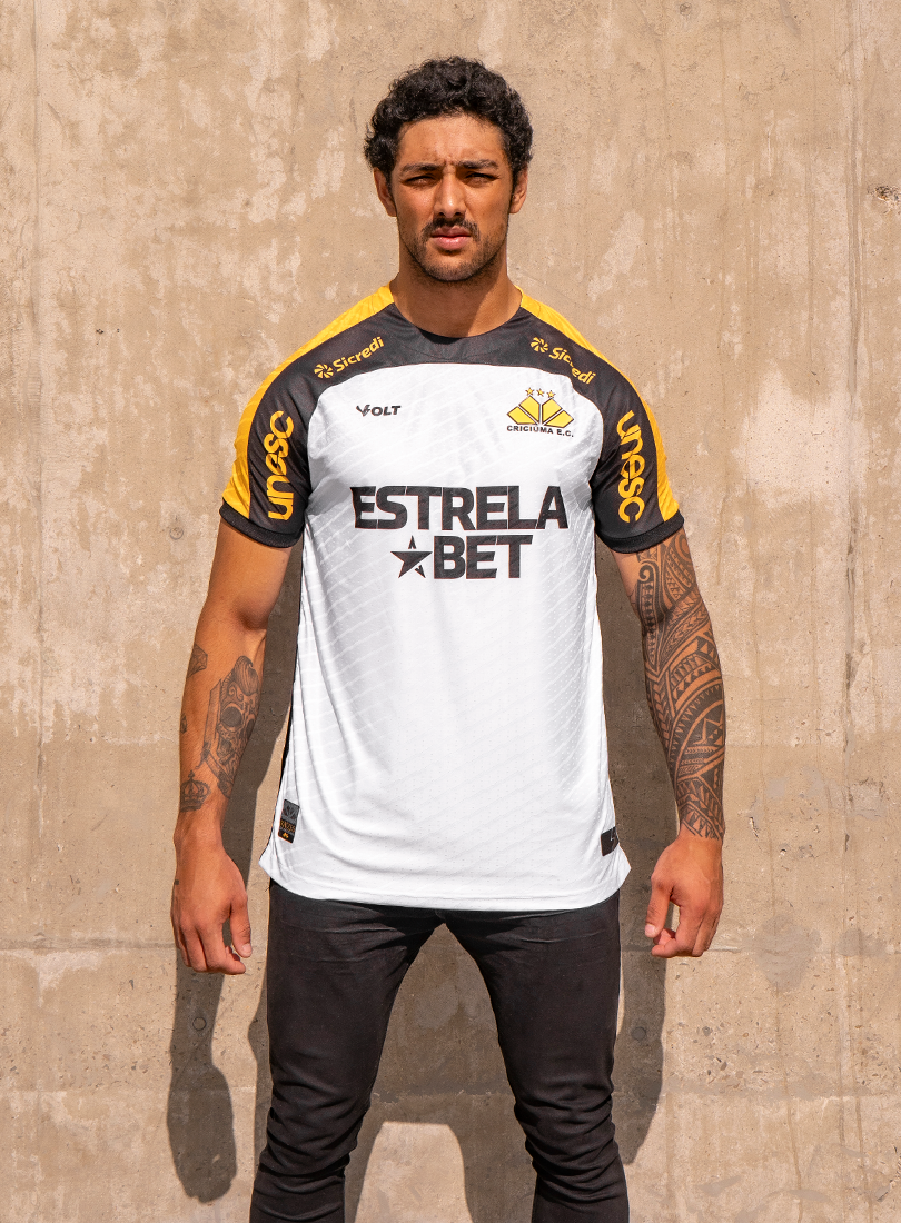 O Criciúma Esporte Clube e a Volt Sport apresentam a nova camisa padrão 2 para a temporada, trazendo um design que homenageia um dos elementos mais icônicos da cidade: o petit-pavé. A peça, predominantemente branca, conta com os ombros em amarelo e preto e estampa especial inspirada nos tradicionais mosaicos que fazem parte da identidade cultural de Criciúma.