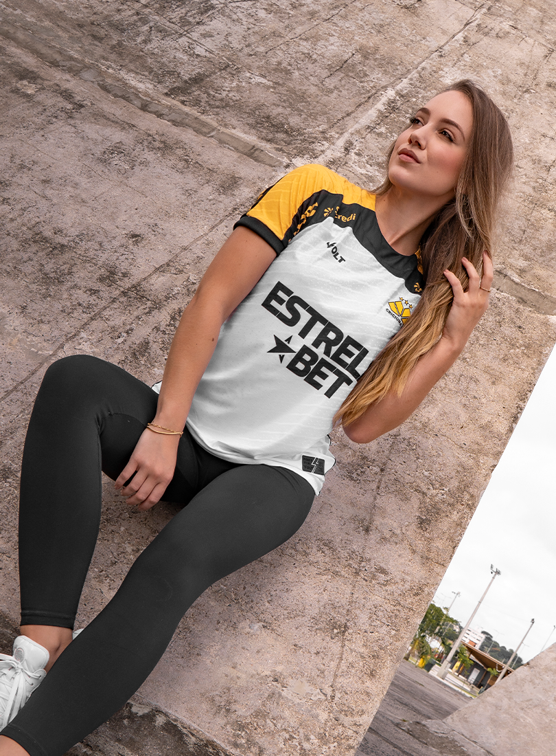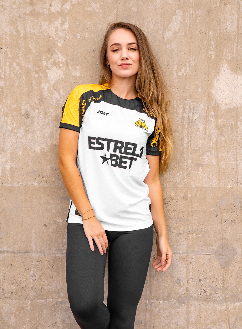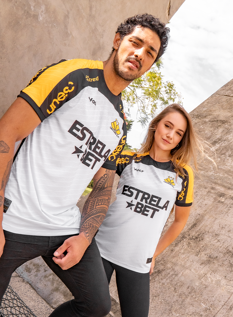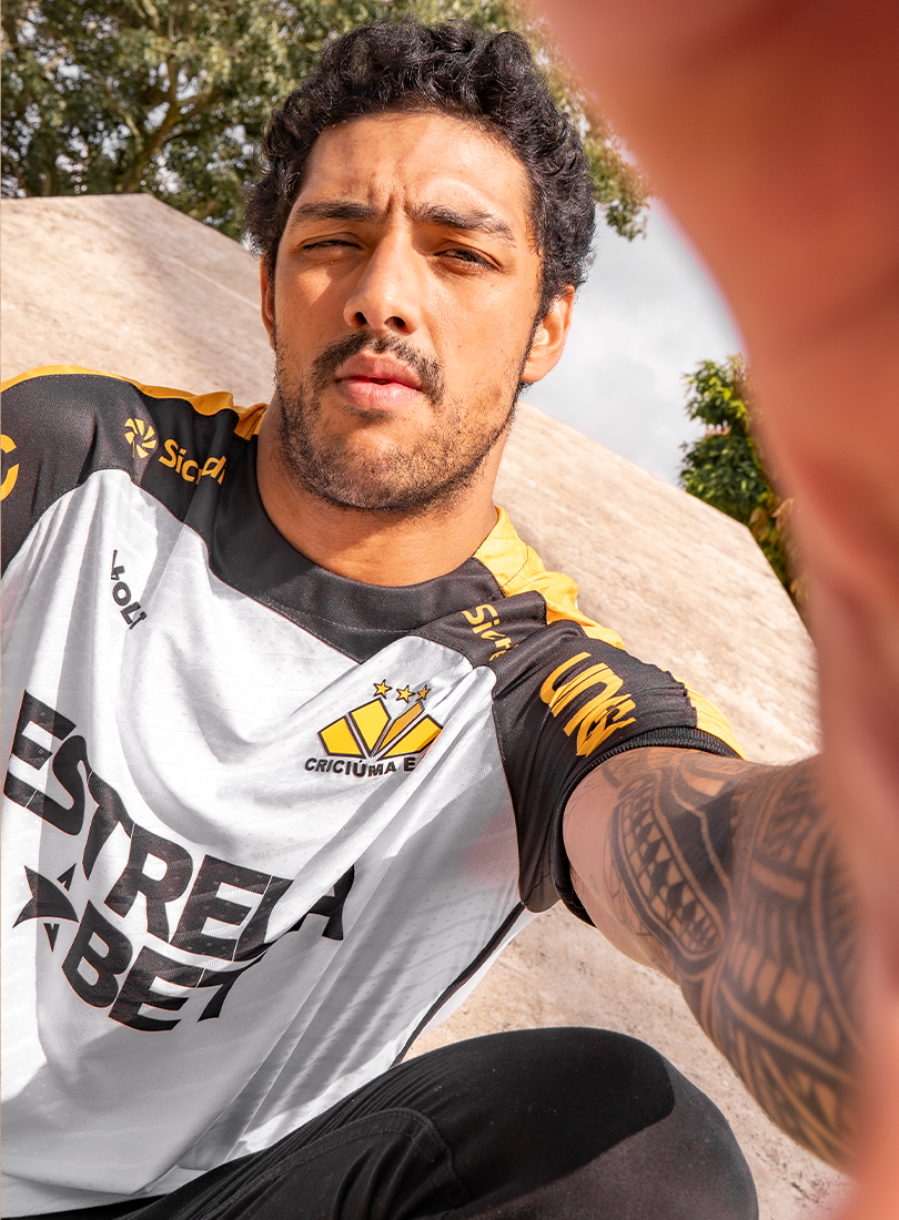 O Criciúma Esporte Clube e a Volt Sport apresentam a nova camisa padrão 2 para a temporada, trazendo um design que homenageia um dos elementos mais icônicos da cidade: o petit-pavé. A peça, predominantemente branca, conta com os ombros em amarelo e preto e estampa especial inspirada nos tradicionais mosaicos que fazem parte da identidade cultural de Criciúma.