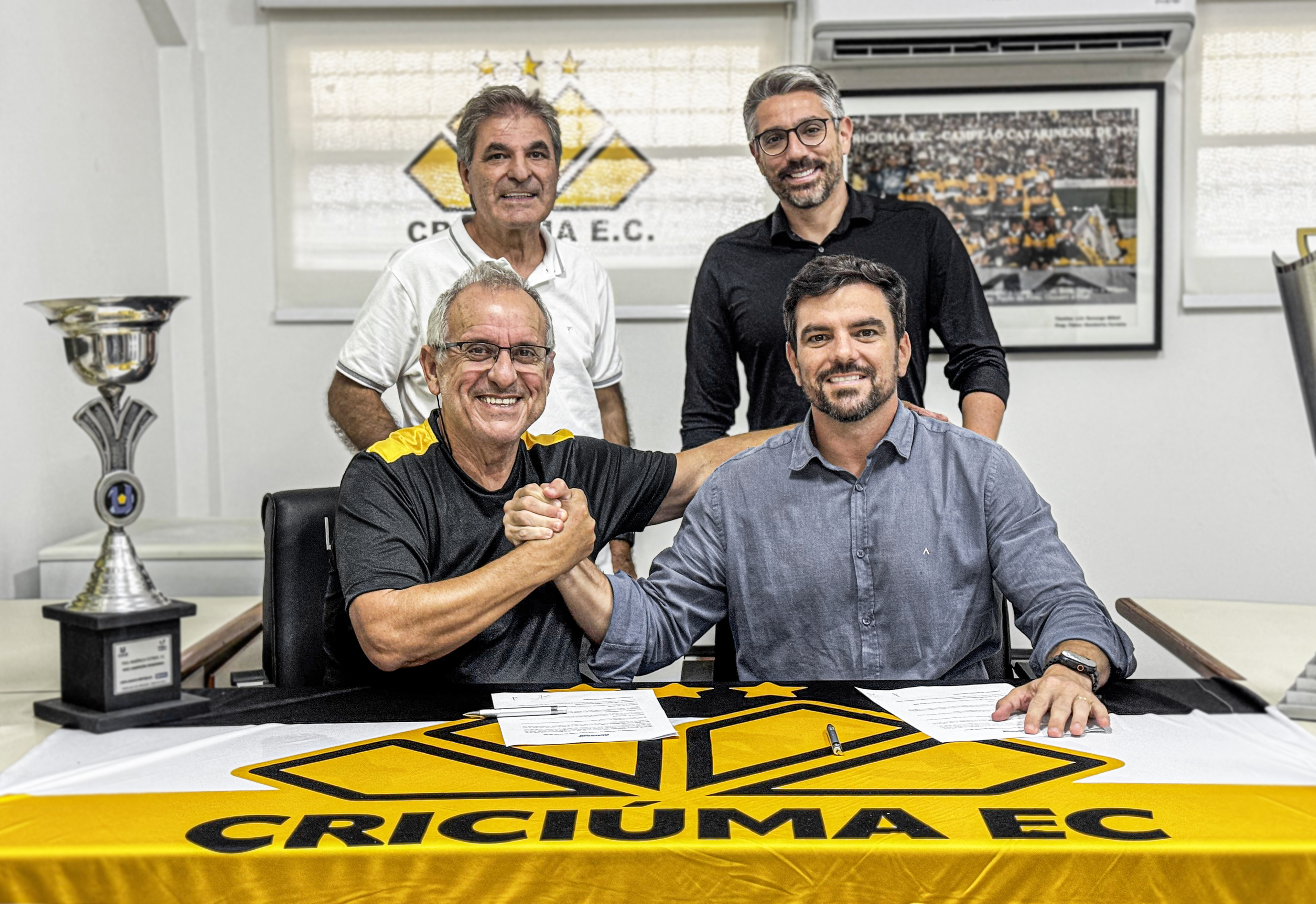 A assinatura do contrato aconteceu na sala da presidência do Estádio Heriberto Hülse, com a presença do presidente do Criciúma, Pedro Paulo Canella, do diretor, Gelson D’Agostin, e dos representantes da Acessar Mídia, Ricardo Nazario e Franklin Ferreira Timboni.